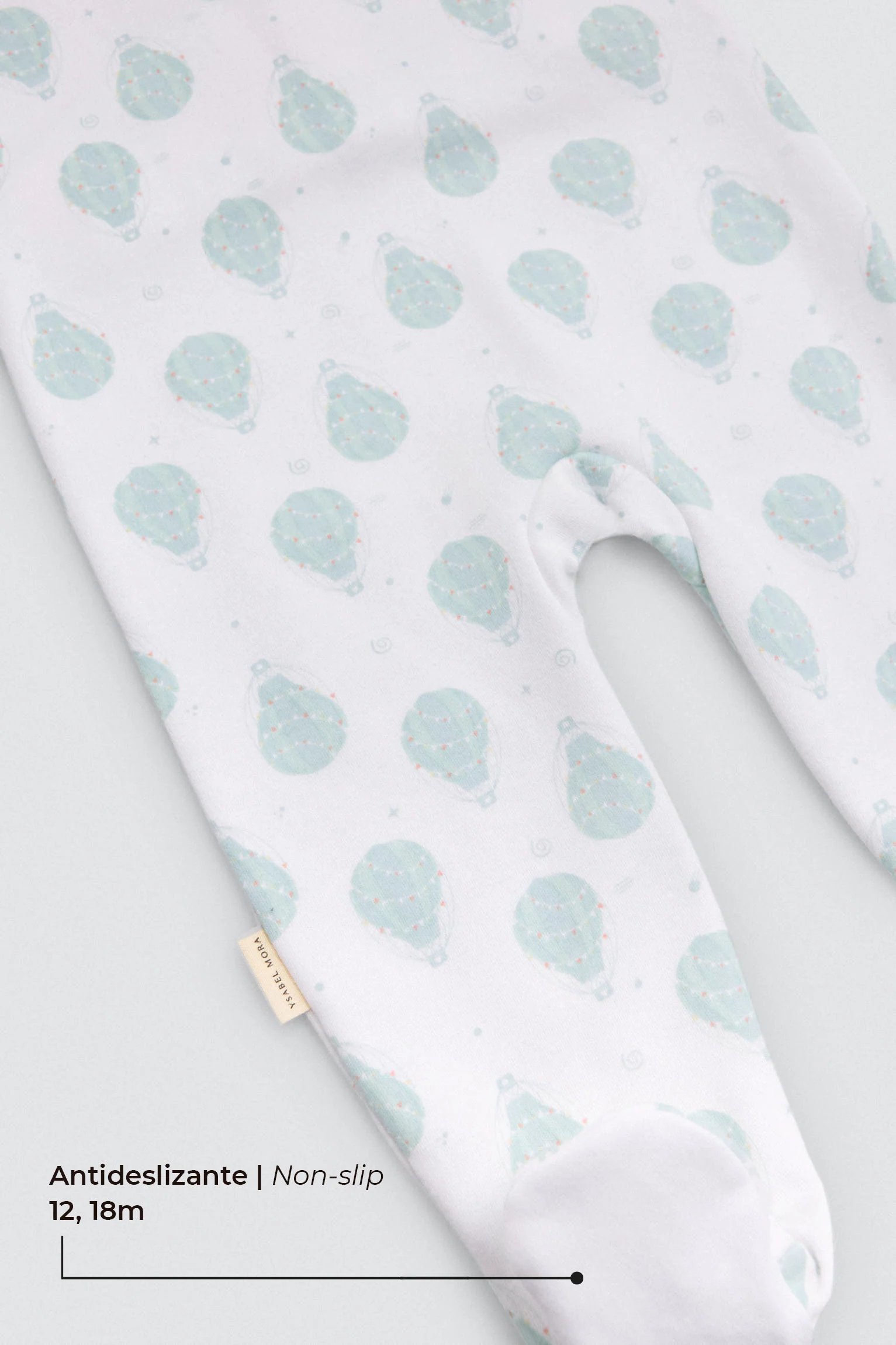 Barboteuse bébé à manches longues avec intérieur en peluche, fermeture à boutons et pieds antidérapants. Imprimé ballons sur fond blanc. Idéale pour les bébés actifs qui commencent à ramper. 60 % coton, 40 % polyester
