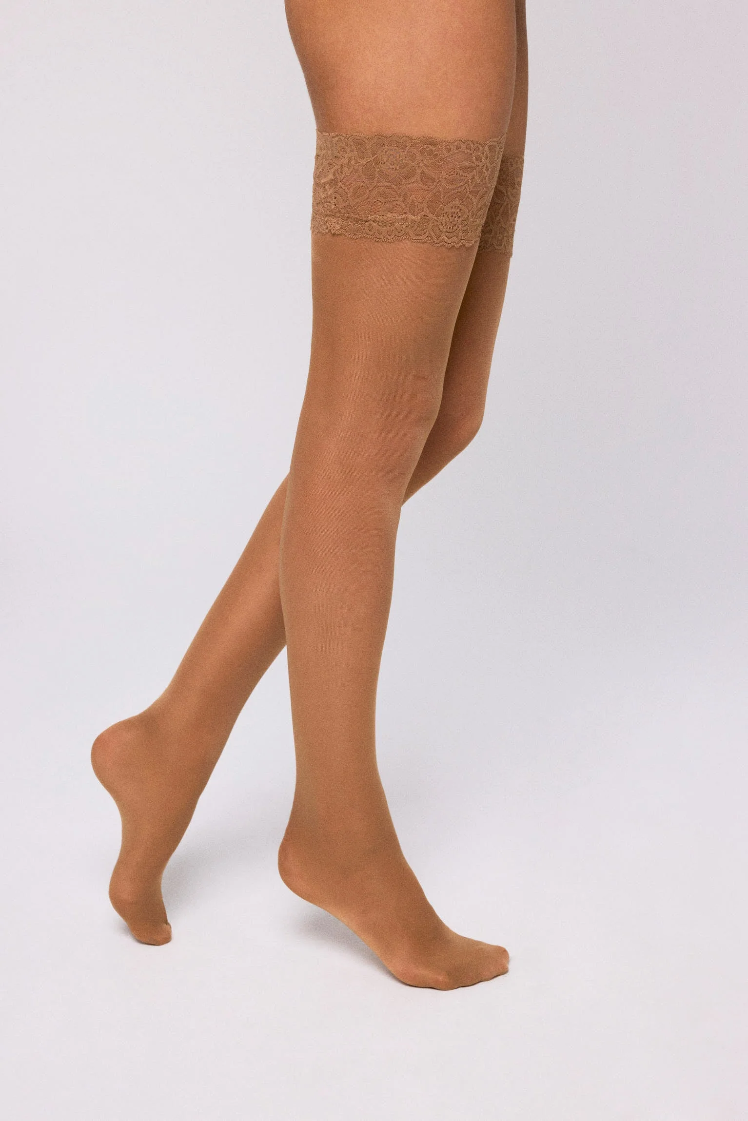 Bas avec jarretière en dentelle 40 den beige