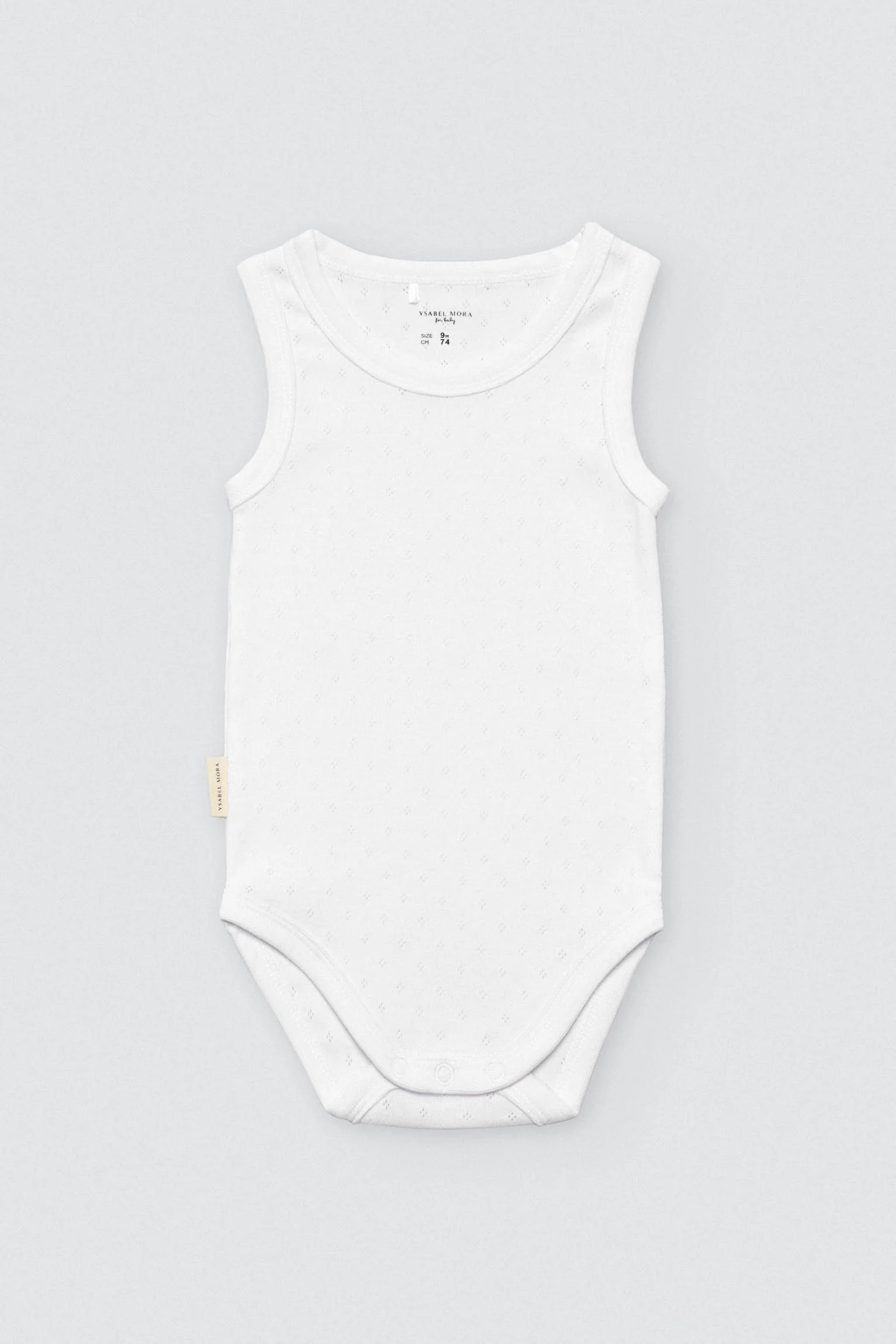 Body basique à larges bretelles pour bébé. Modèle unisexe, ajouré et blanc, avec boutons pression à l’entrejambe. Larges bretelles pour offrir un meilleur soutien au bébé. Fabriqué en coton 100 % naturel, un matériau doux et respirant. Ce vêtement ne peut pas manquer dans la garde-robe de votre bébé ! 100% Coton