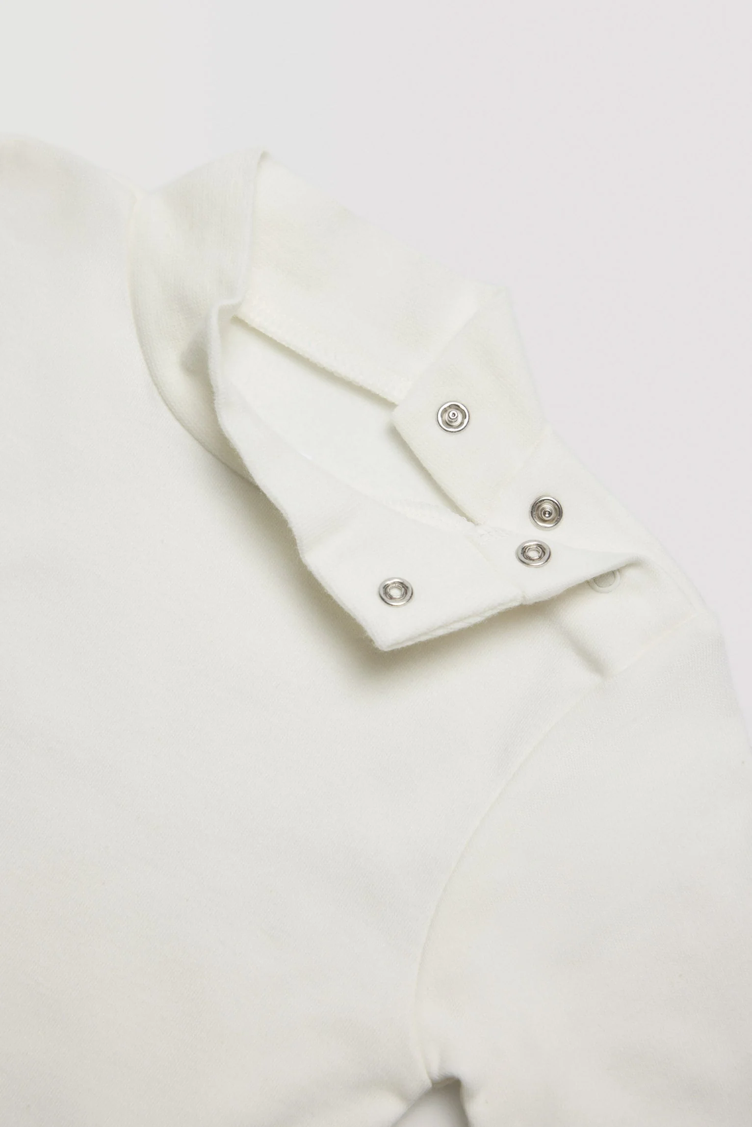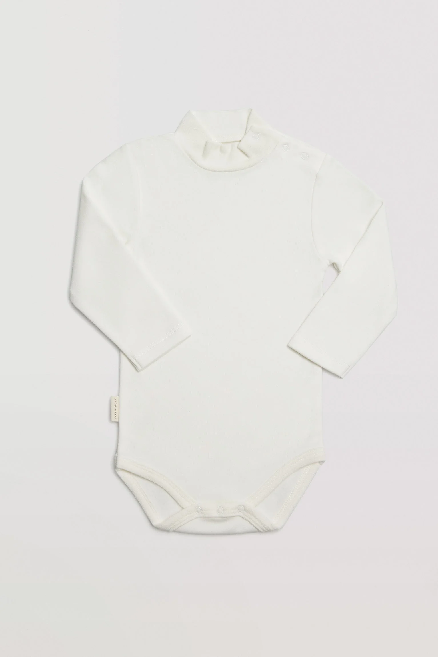 Body bébé à manches longues et col montant en coton naturel. Vêtement confectionné dans un tissu doux et agréable grâce à son intérieur moelleux. Couleur blanche.