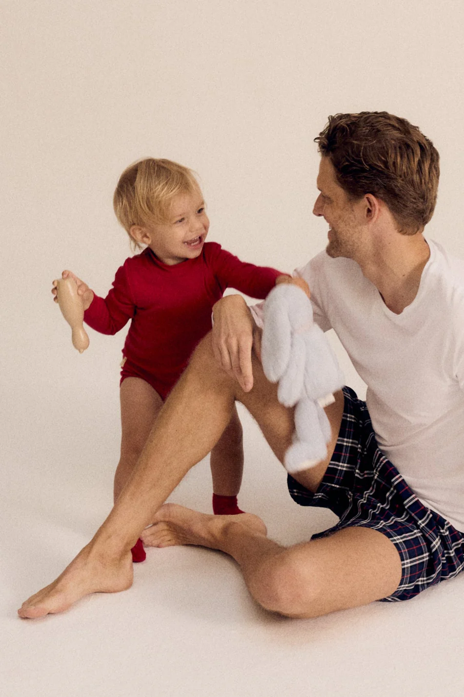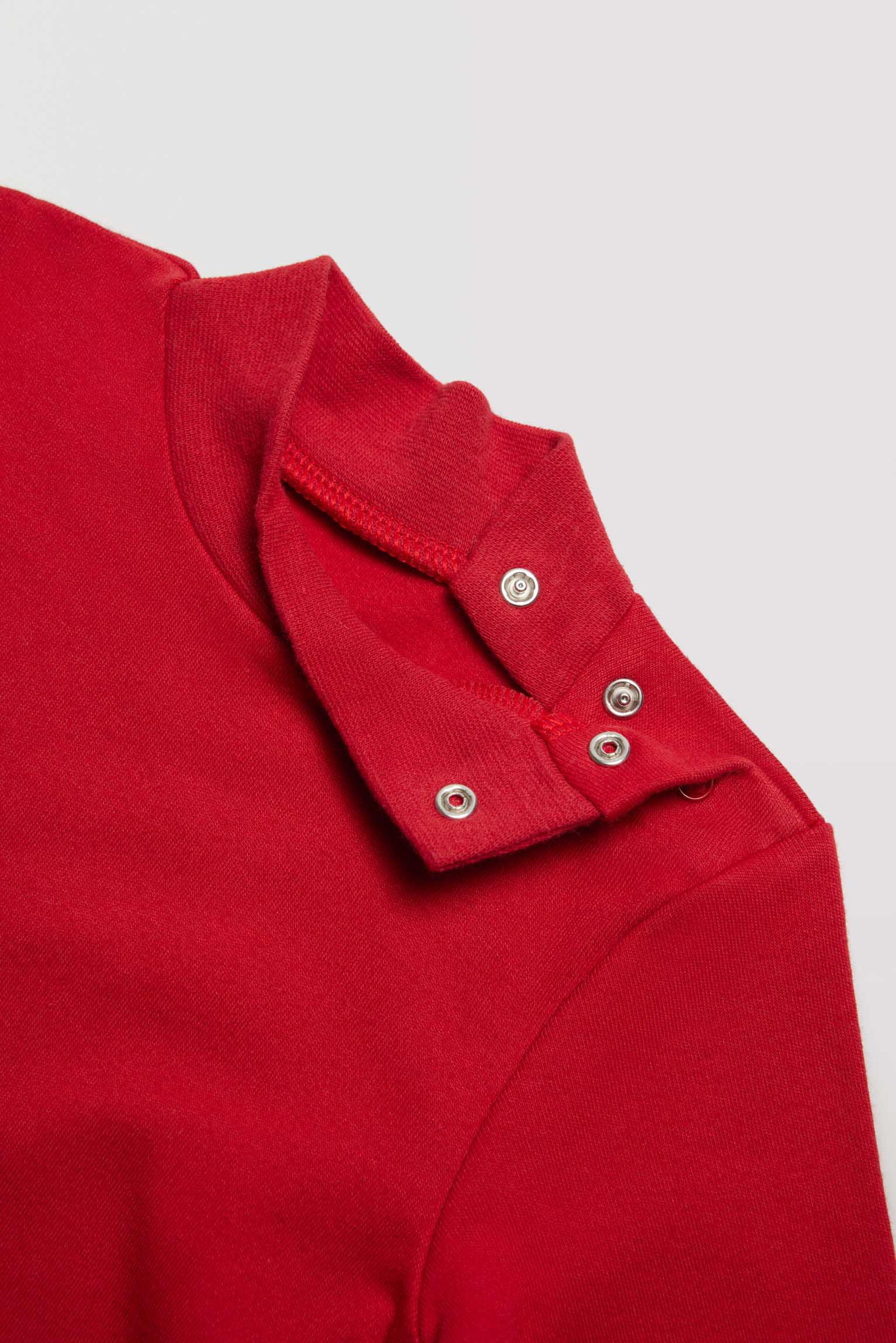 Body bébé à manches longues et col montant en coton naturel. Vêtement confectionné dans un tissu doux et agréable grâce à son intérieur moelleux. Disponible en rouge, marine et gris à partir de 12 mois. Couleur rouge.