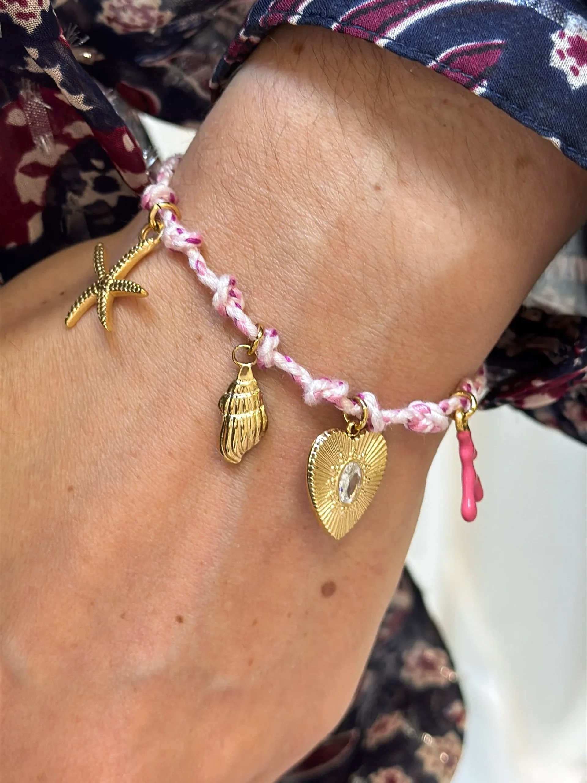 NB : La couleur des charms peut s’altérer avec l’eau, il vaut mieux éviter les contacts répétés.