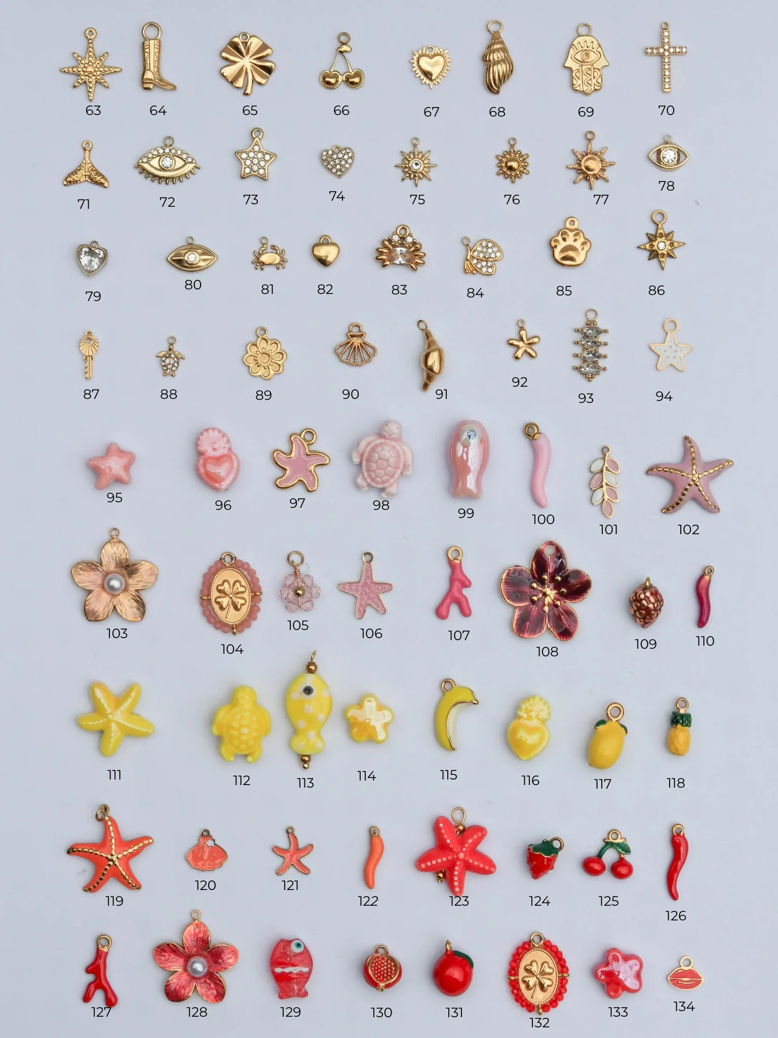 NB : La couleur des charms peut s’altérer avec l’eau, il vaut mieux éviter les contacts répétés.