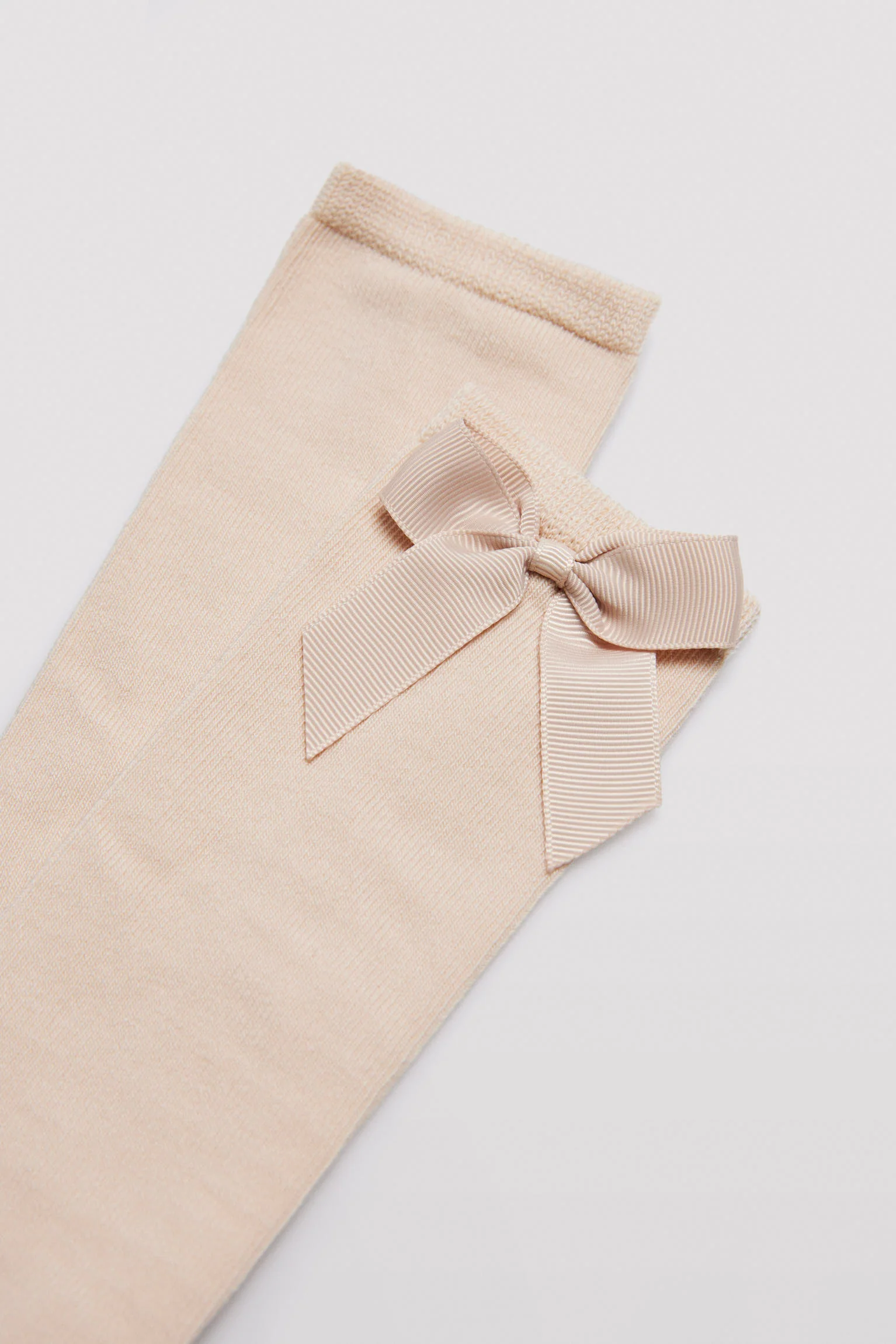 Chaussette longue pour enfant avec détail nœud beige