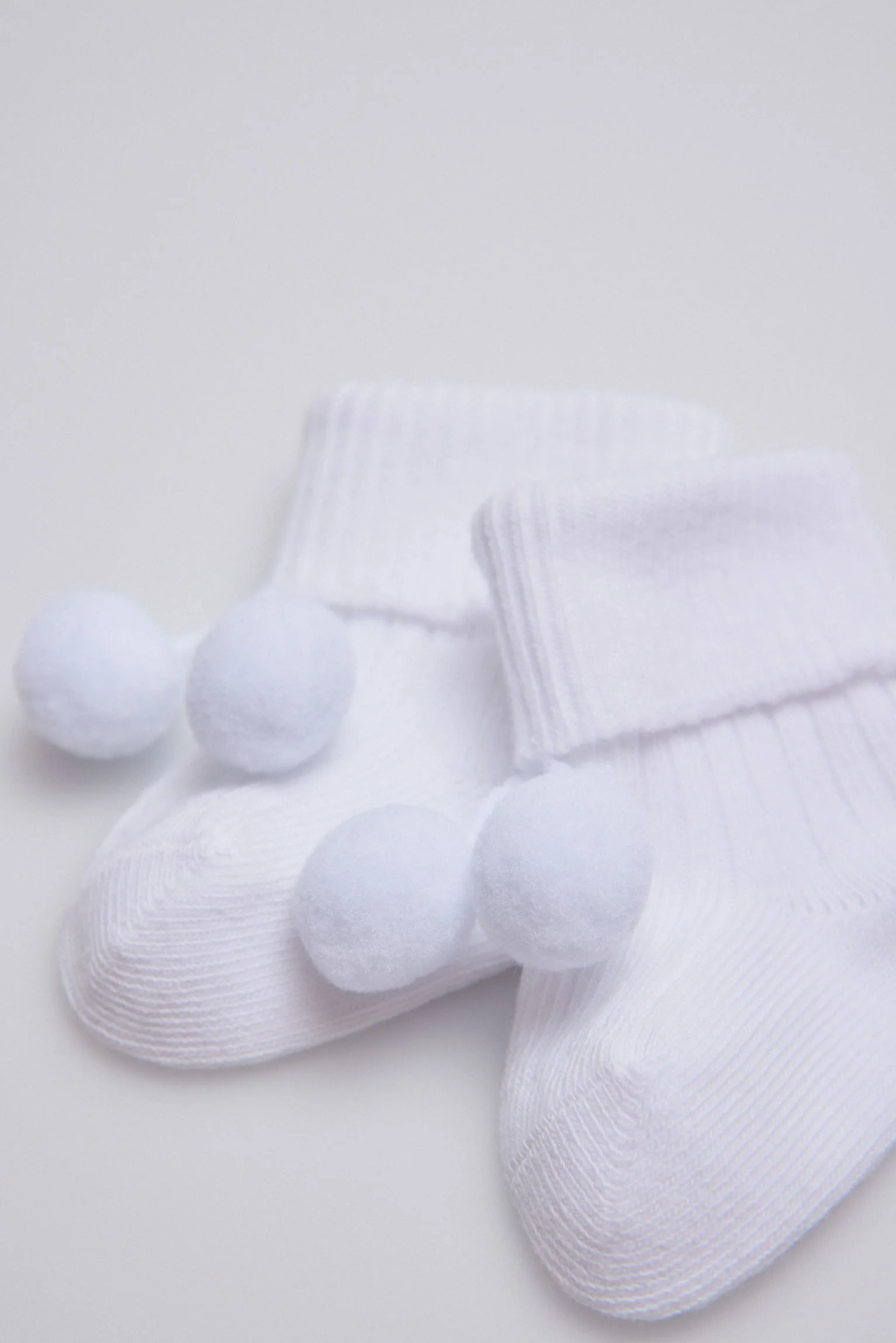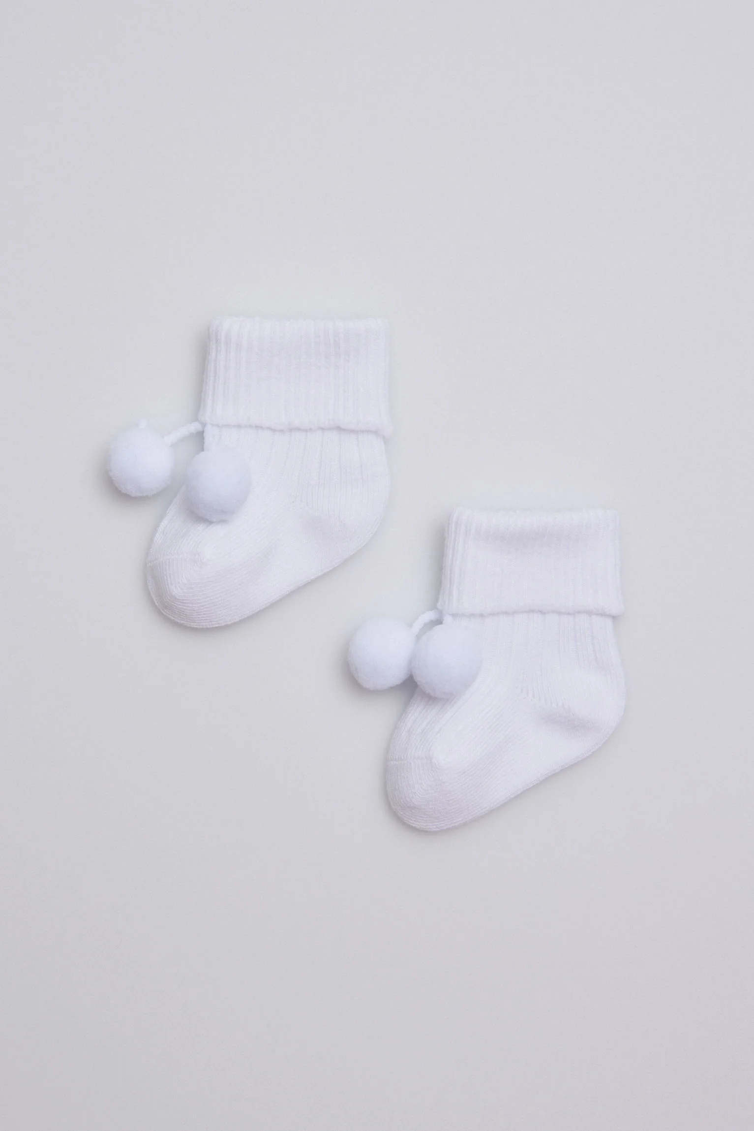 Chaussettes côtelées à pompons pour nouveau-né blanc