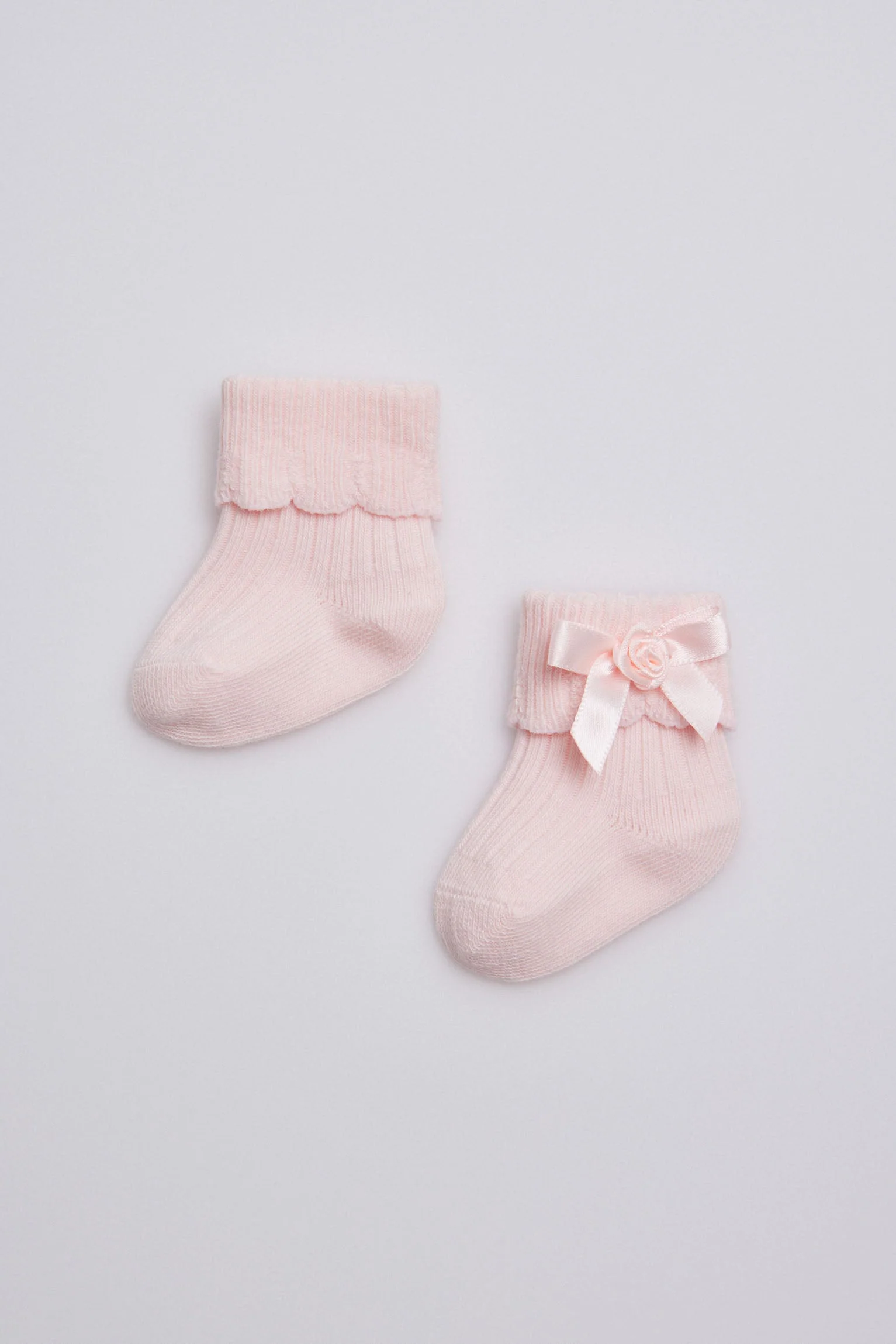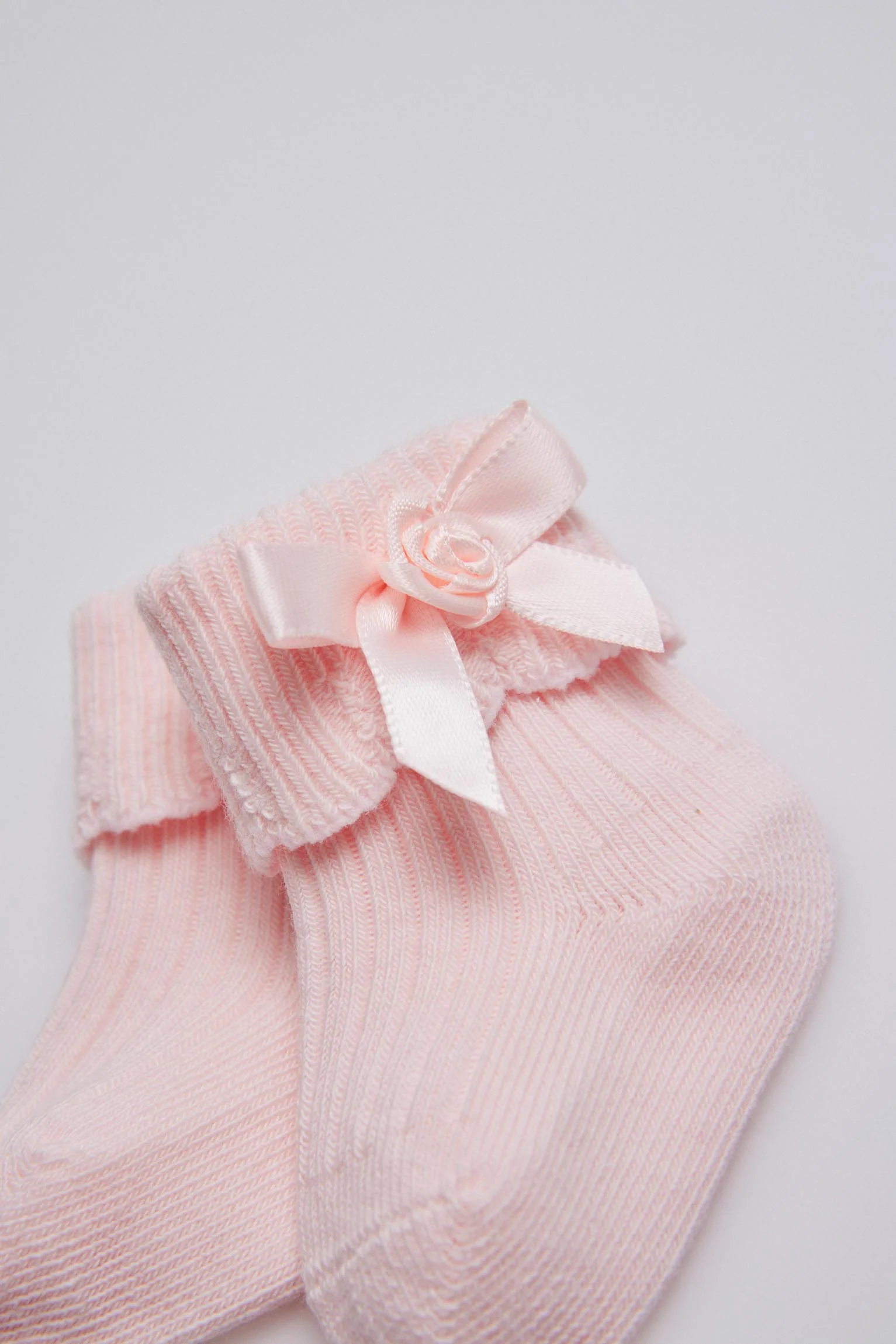 Chaussettes côtelées noeud nouveau-né rose