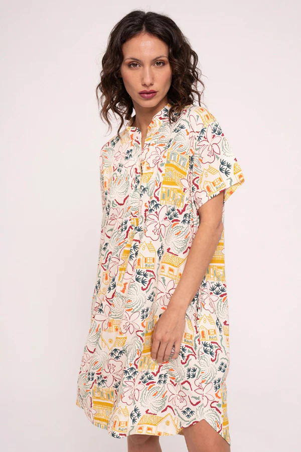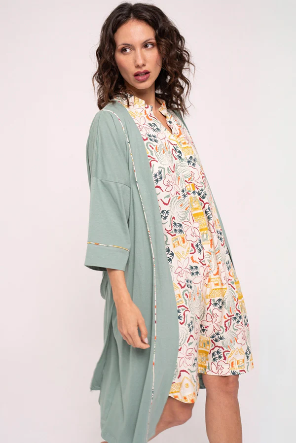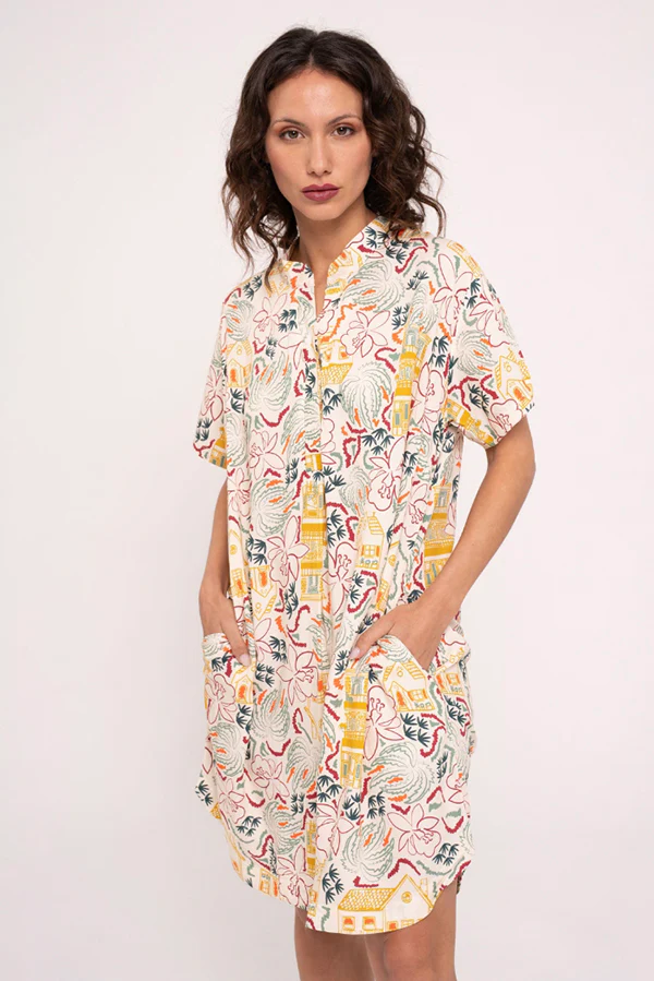Robe chemise confortable avec imprimé coloré et poche latérale. 100 % Viscose LABORATOIRE DE MARQUES. MUYDEMI est une marque avec une solide expérience dans le monde textile, qui a réinventé le monde du Homewear avec des designs uniques, conçus pour ceux qui recherchent la qualité, le confort et une touche d’originalité dans chaque vêtement.
