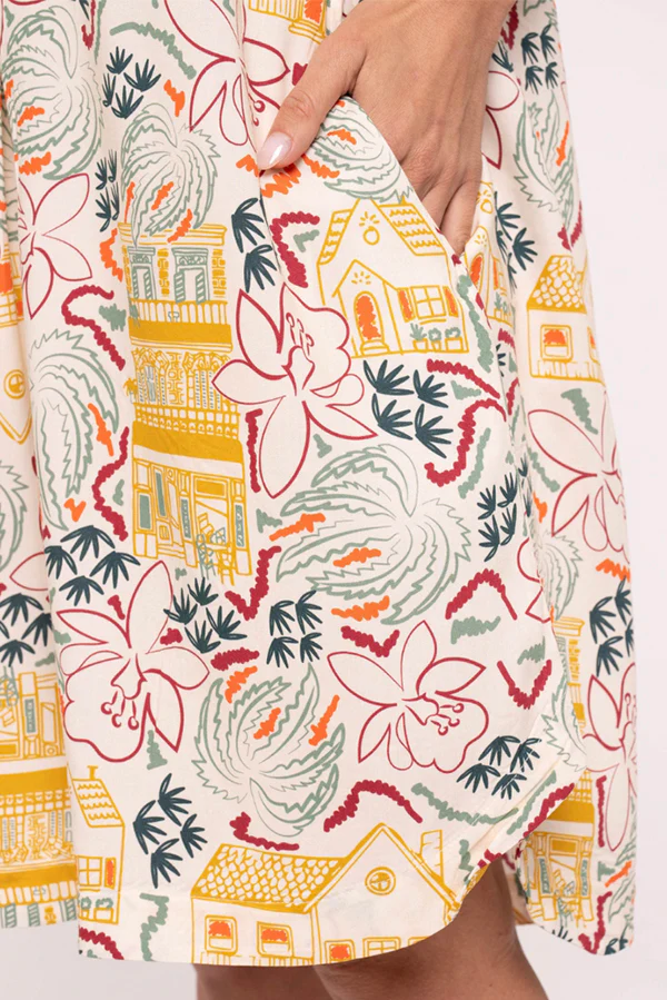 Robe chemise confortable avec imprimé coloré et poche latérale.
