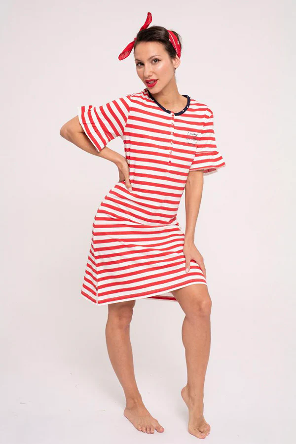 Chemise de nuit à manches courtes avec imprimé rayé. Détail volant sur les manches.