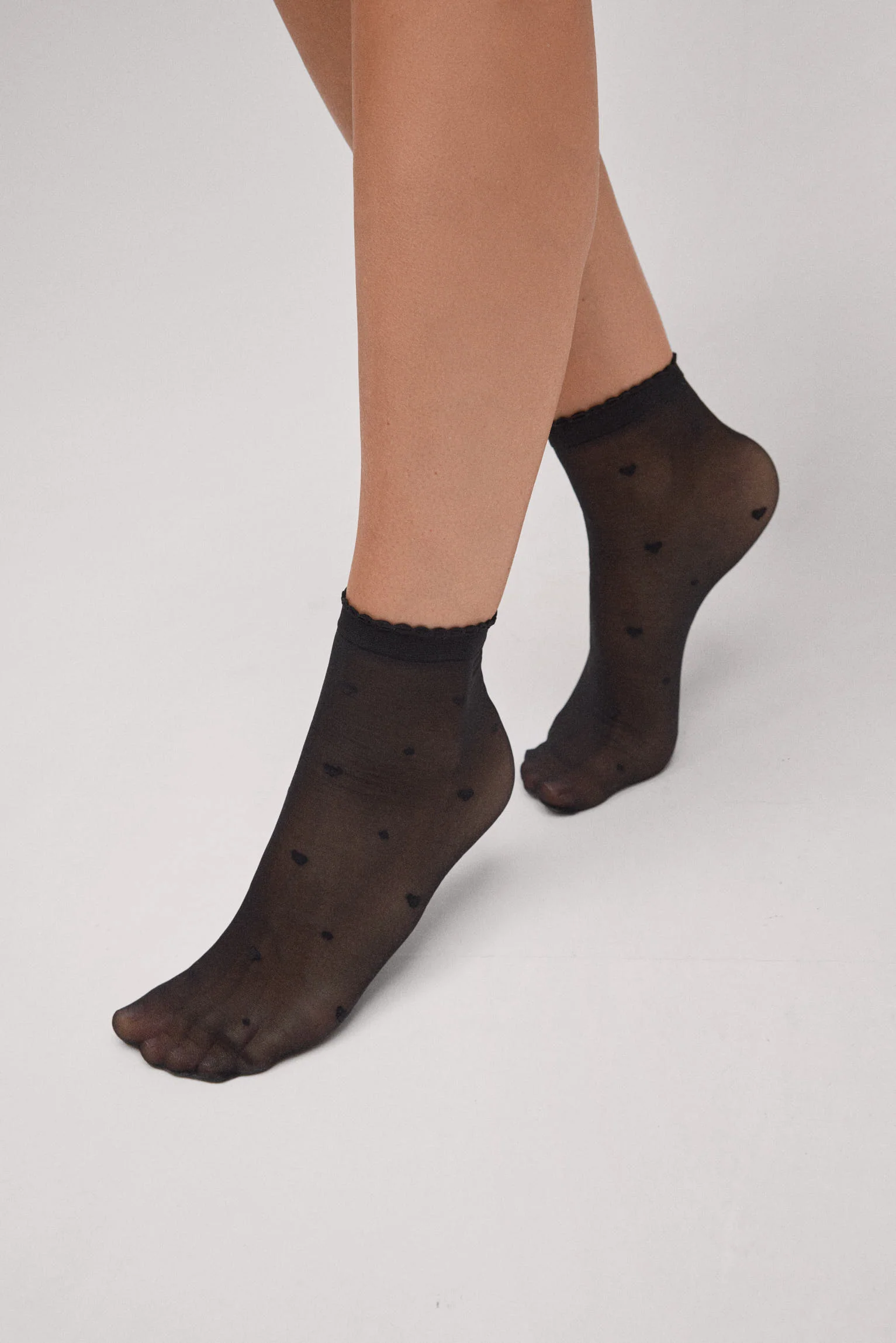 Collants thermiques à la cheville 20 deniers imprimés cœurs.