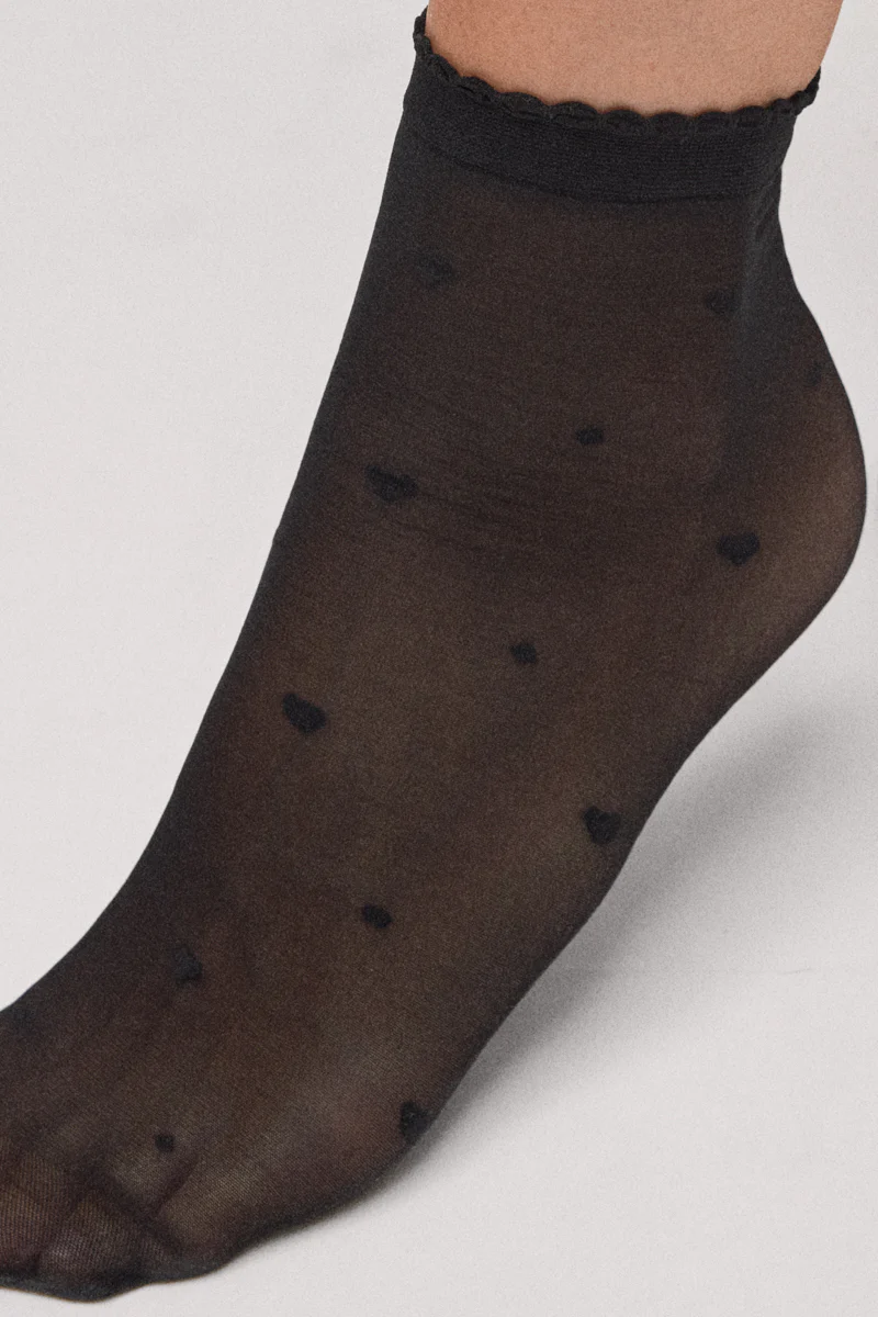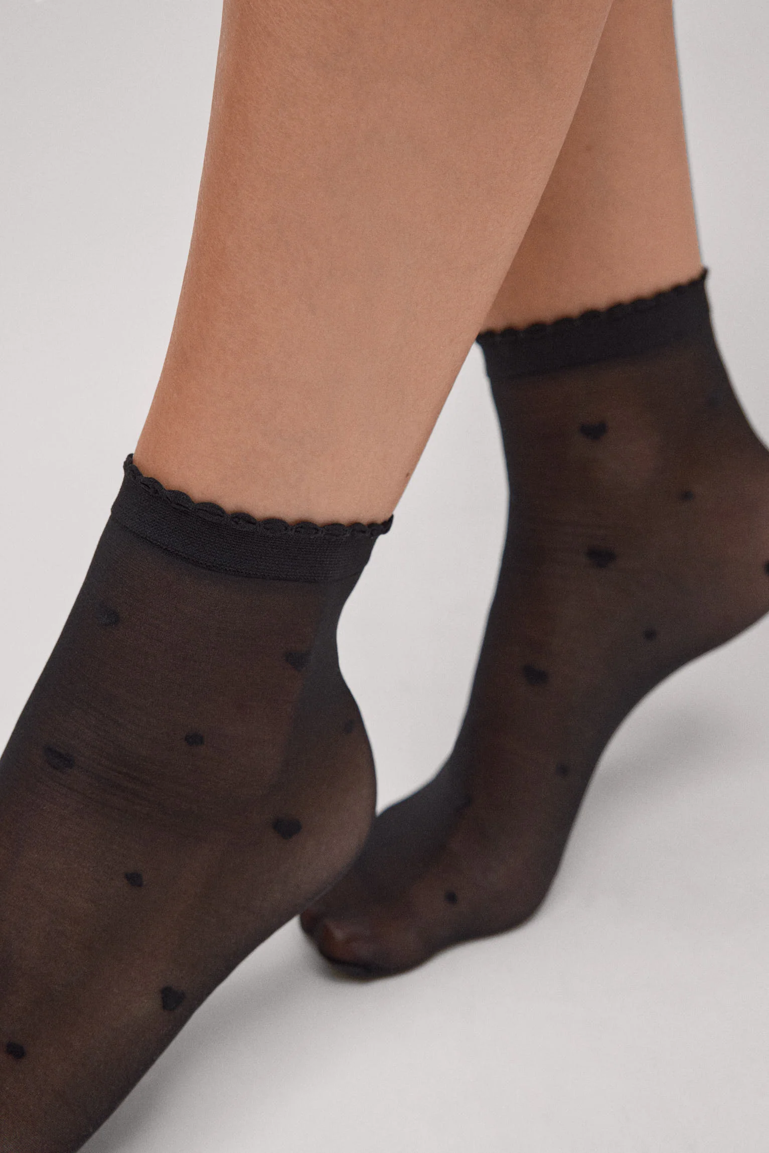 Collants thermiques à la cheville 20 deniers imprimés cœurs. 89 % polyamide, 11 % élasthanne