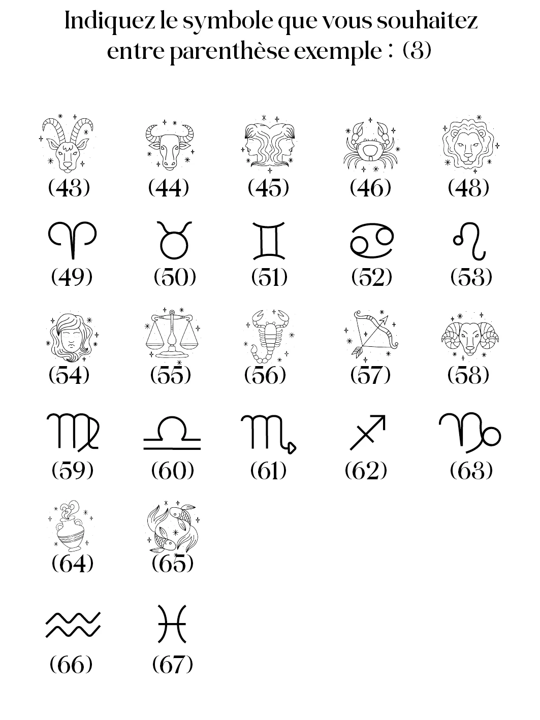 • Si vous souhaitez un symbole n’oubliez pas de le mettre entre parenthèse sinon nous graverons le chiffre indiqué (le cœur étant petit nous ne recommandons pas les symboles sur ce type de bijoux)