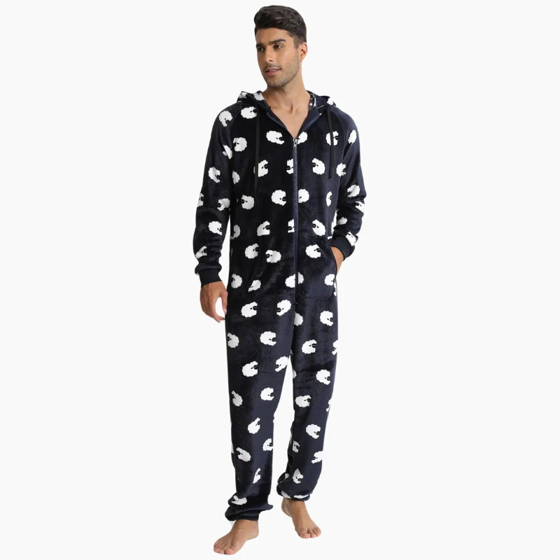 Combinaison pyjama bleu marine à motifs en matière polaire pour homme