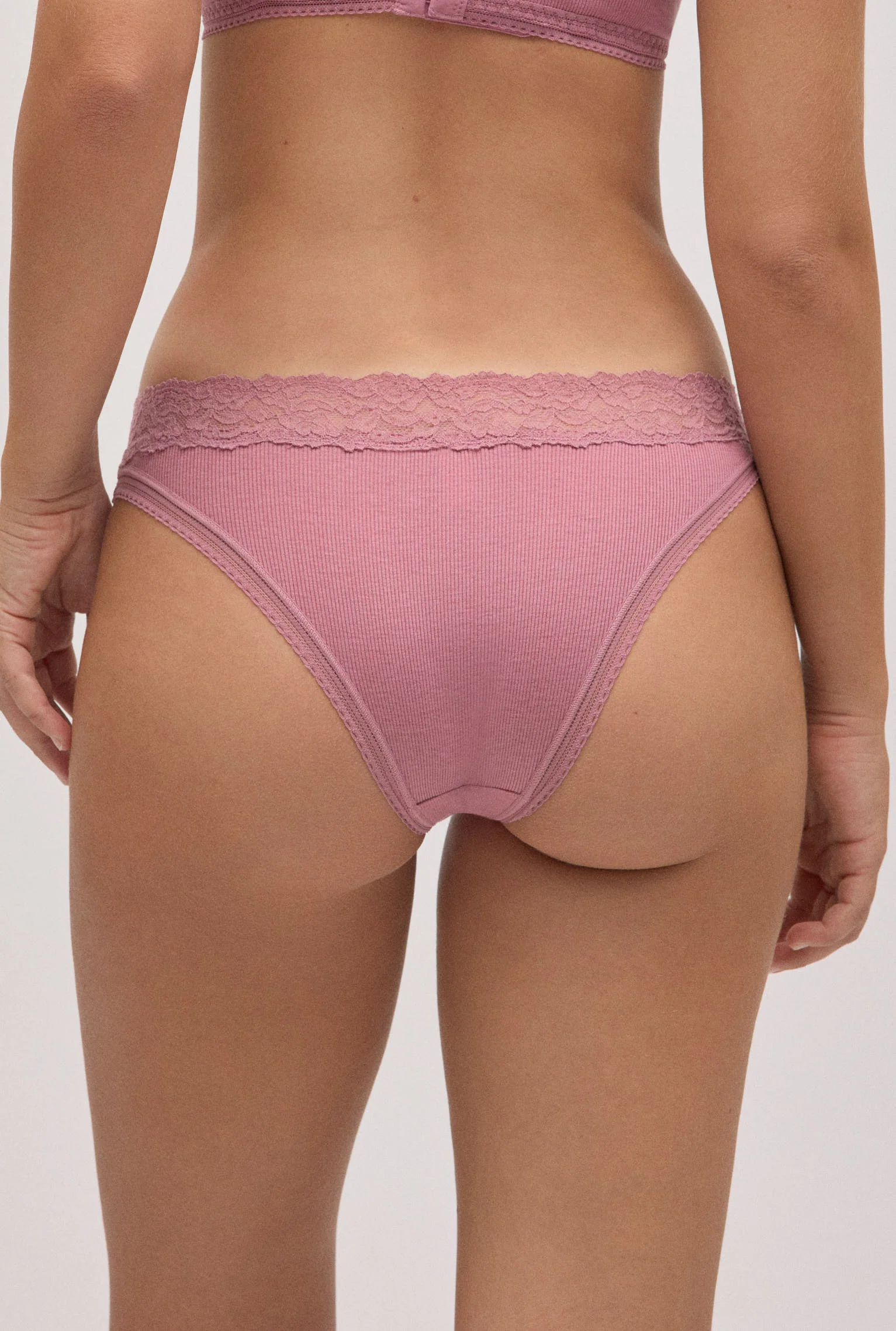 Culotte brésilienne côtelée avec dentelle rose