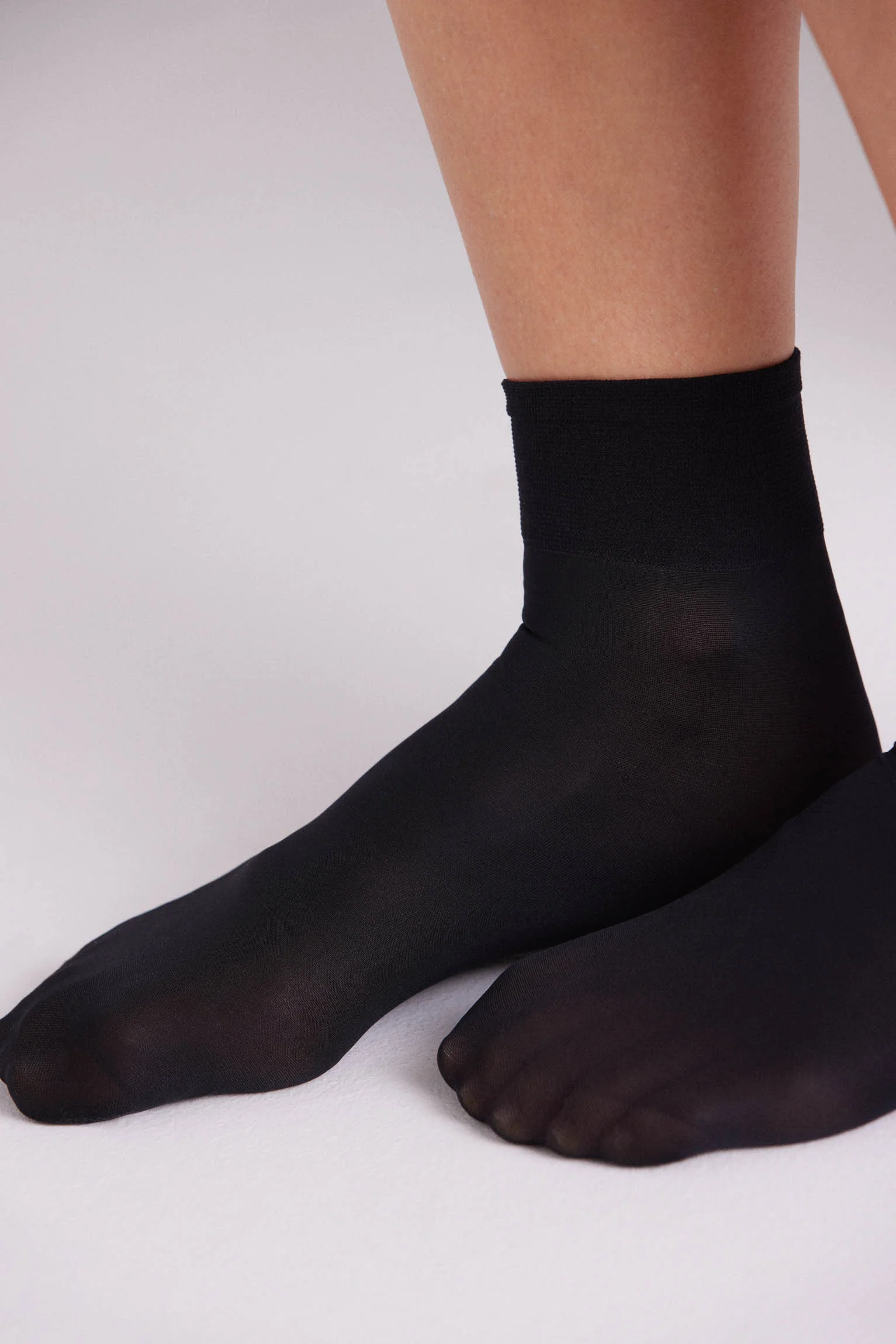 Bracelet de cheville 40 DEN. Sa compression anatomique procure une sensation de repos et évite une mauvaise circulation, tout en assurant un confort maximal. Manchette anti-pression. Ça ne tombe pas, ça n’appuie pas. Composition : 85% Polyamide, 15% Elasthanne