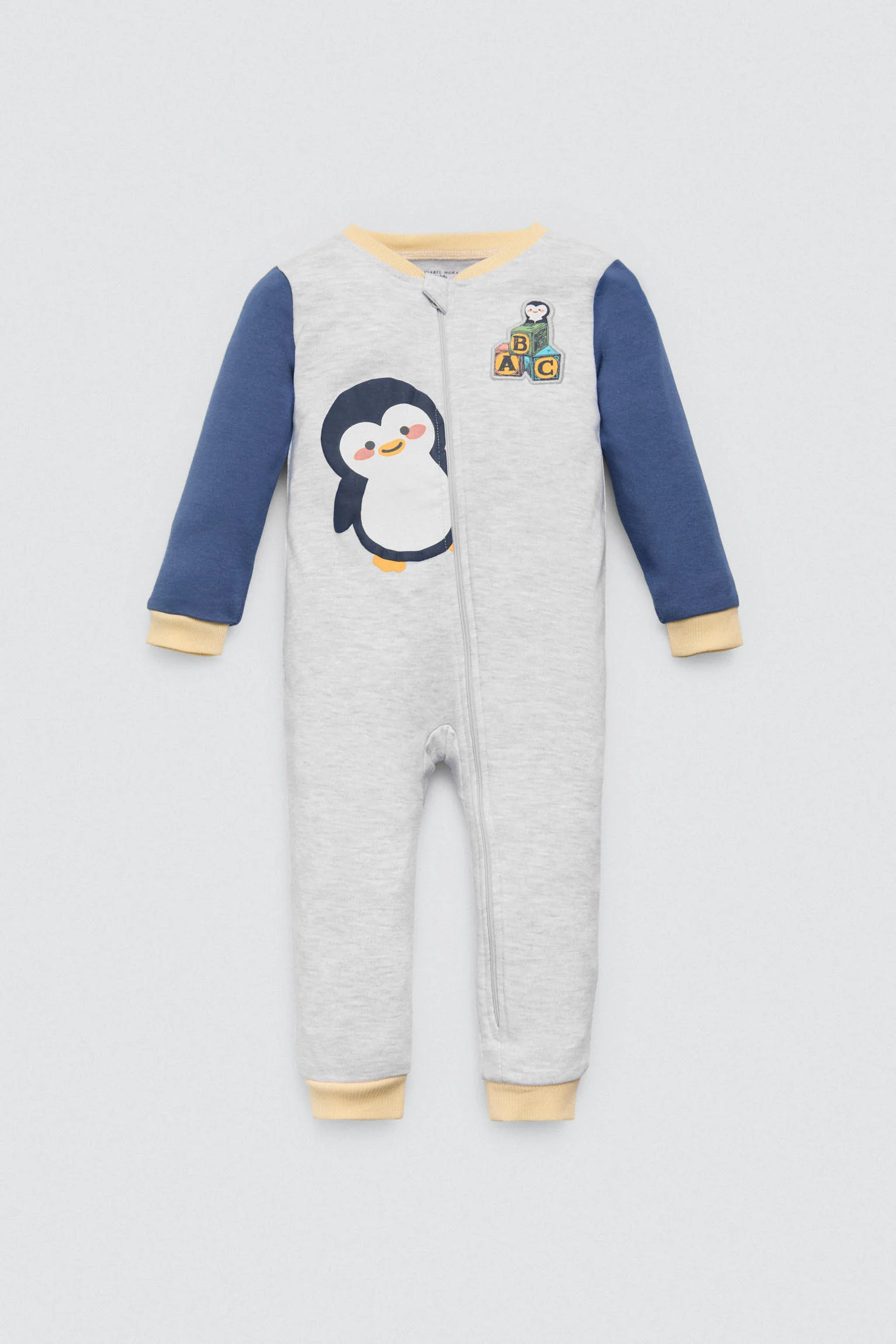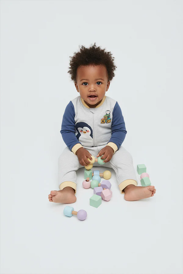 Barboteuse à manches longues avec intérieur polaire, pieds fermés et motif pingouin. En coton naturel. Idéale pour garder bébé bien au chaud pendant son sommeil ou ses jeux.