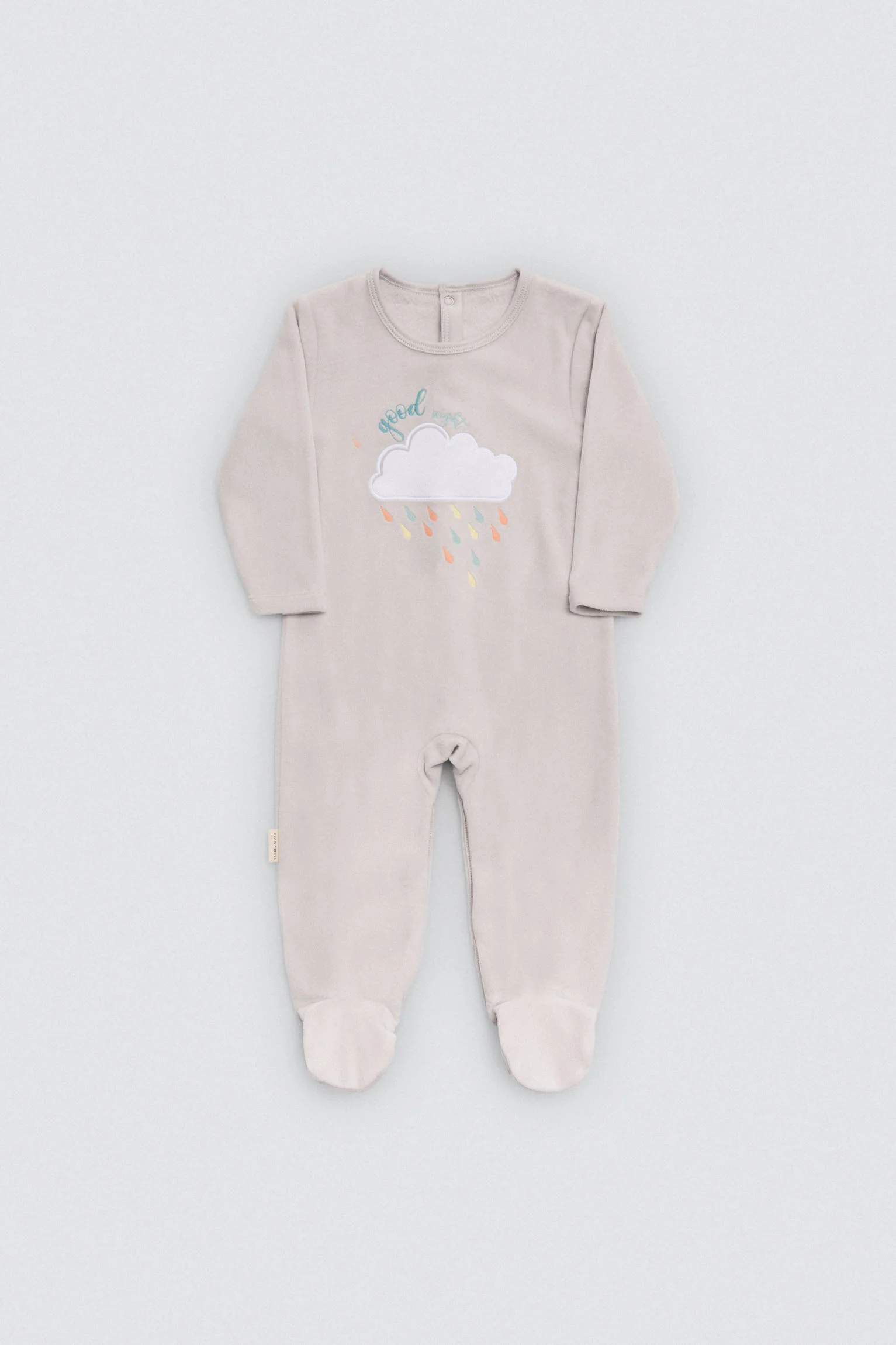 Grenouillère grise à manches longues pour bébé, motif « jour de pluie »