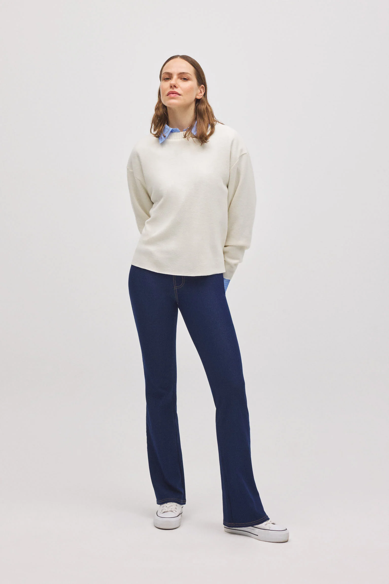 Avec sa coupe évasée et son style intemporel, ce jean stretch offre confort et une touche rétro.