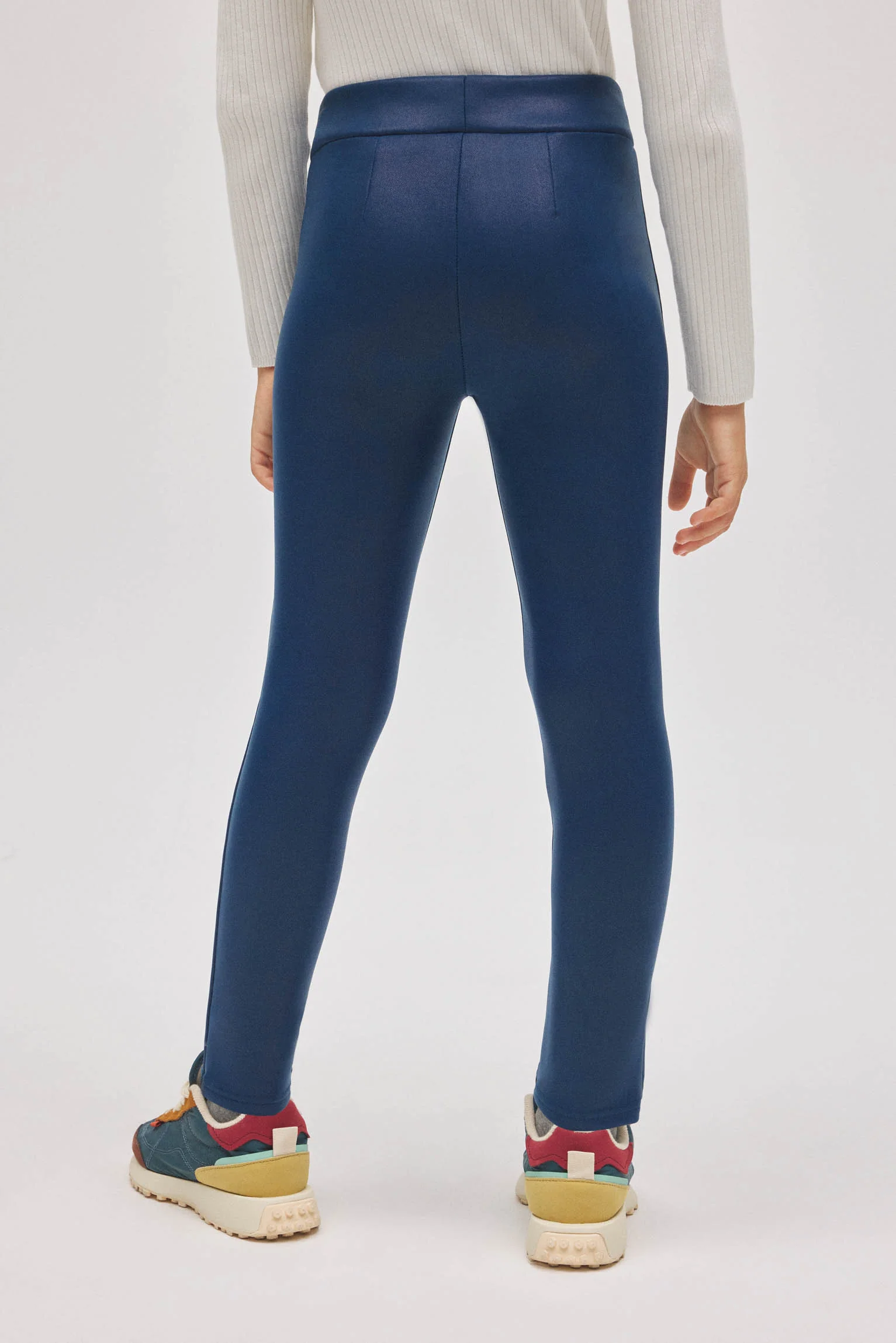 Legging thermique effet cuir. Un vêtement polyvalent, idéal pour les climats froids. Legging thermique bleu en similicuir. Caractéristiques Niveau thermique : Moyen. Idéal pour maintenir la température corporelle par temps froid. Tissu effet cuir. Taille haute avec ceinture élastique. Couleur bleu océan. 95 % polyester, 5 % élasthanne