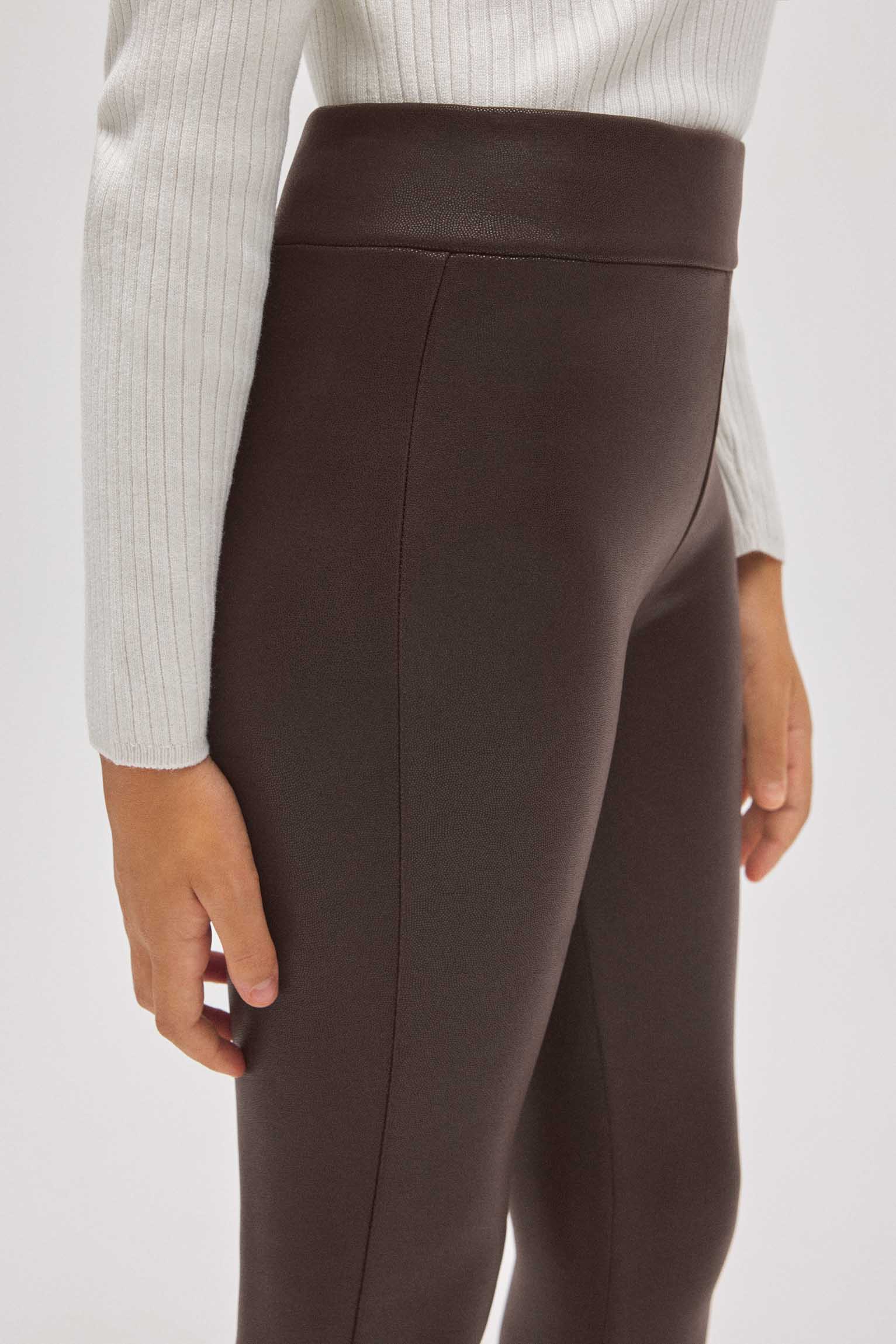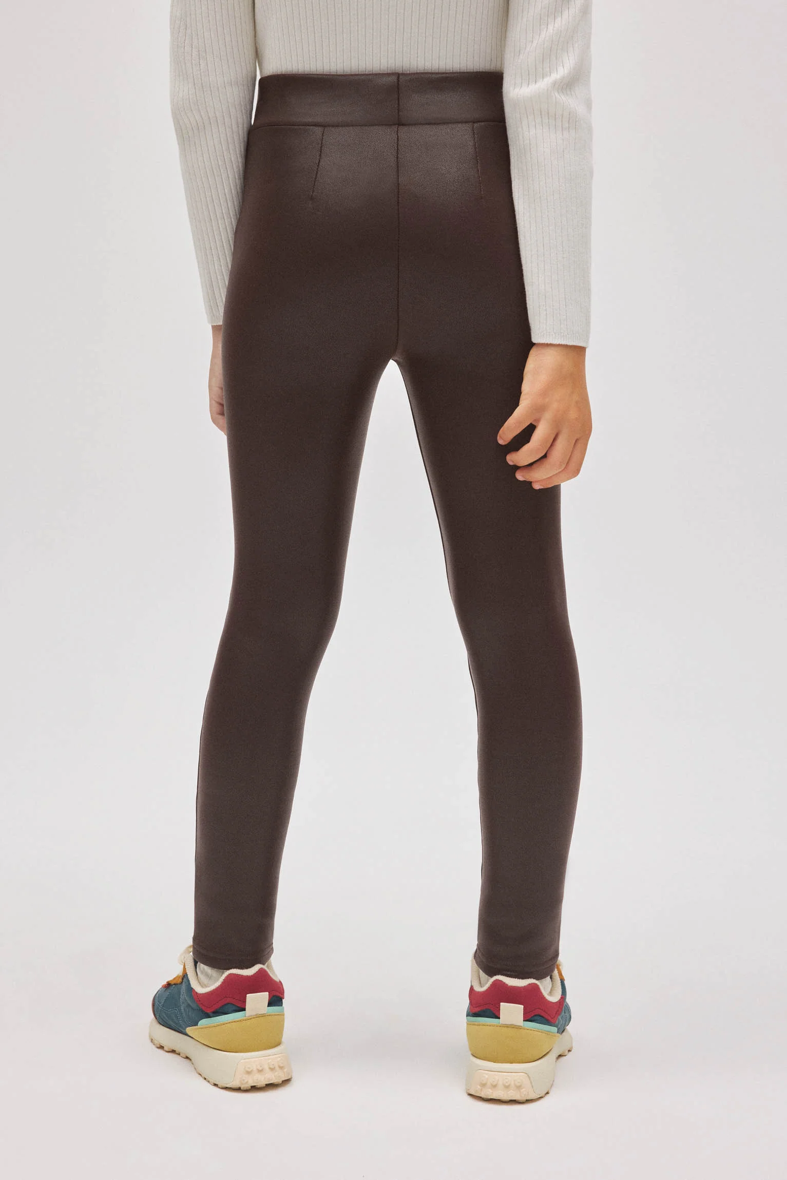 Legging thermique en similicuir marron chocolat. Caractéristiques