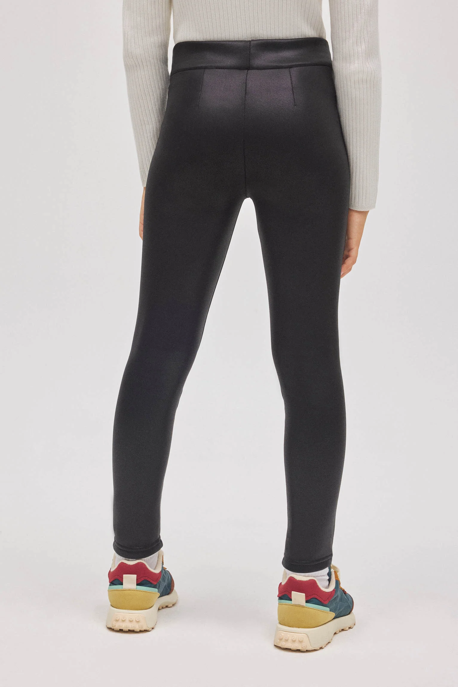 Legging thermique effet cuir avec taille haute, large bande élastique et finition effet cuir. Un vêtement polyvalent, idéal pour les climats froids.