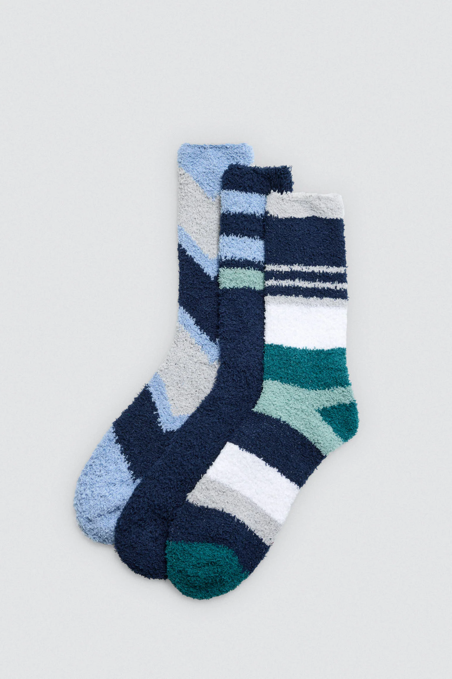 Lot de 3 chaussettes hautes en flanelle avec bord anti-pression et imprimé rayé