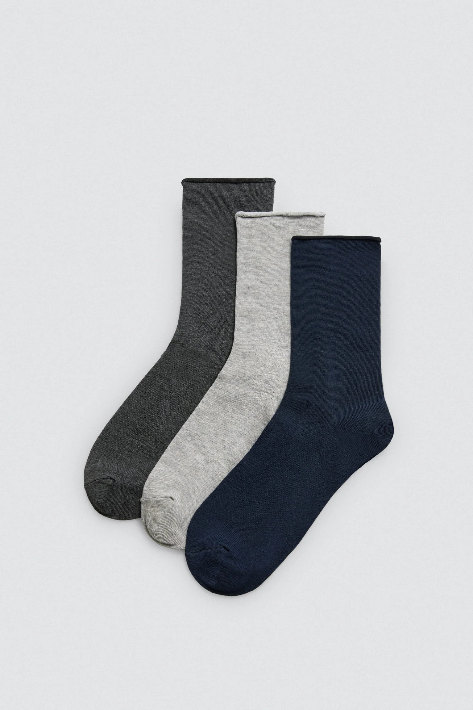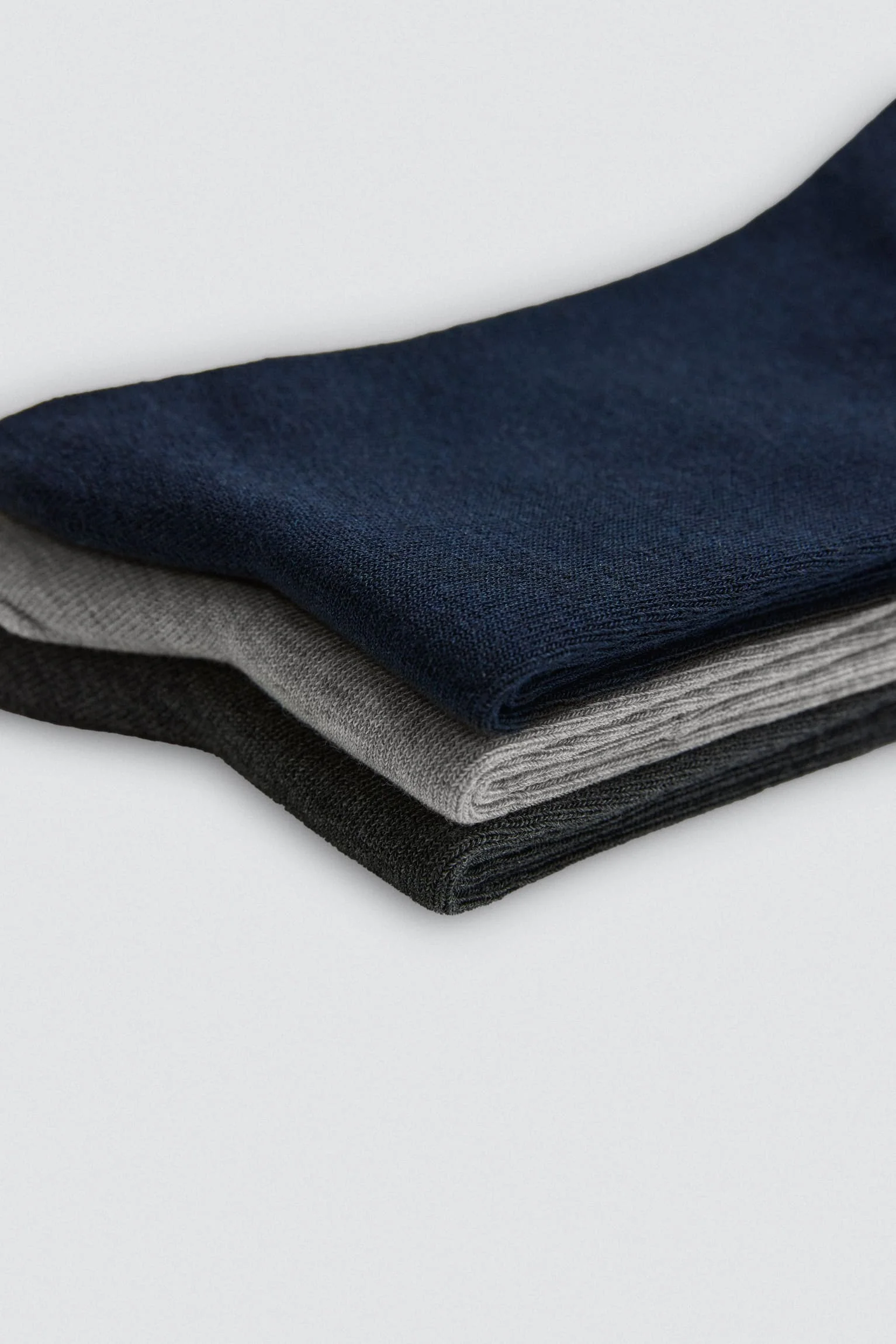 Lot de 3 chaussettes hautes en bambou sans revers aux couleurs neutres