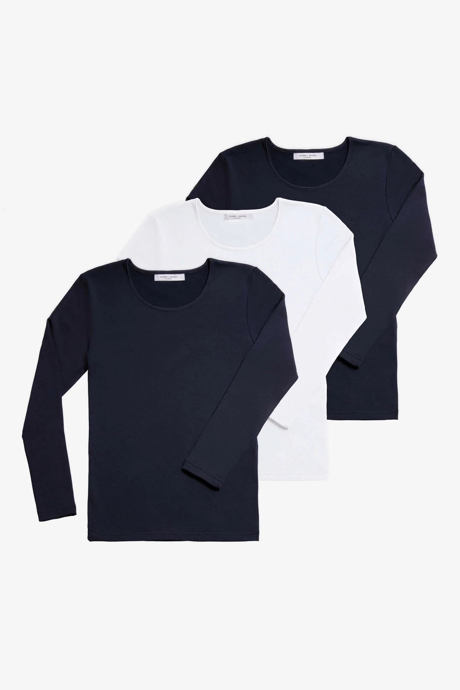 Lot de 3 T-shirts thermiques : 1 noir, 1 blanc et 1 marine. T-shirts thermiques pour femmes à manches longues et col rond. Les t-shirts thermiques qui conservent le mieux la chaleur corporelle à l’intérieur de vous. Fabriqué selon les normes de qualité les plus strictes et doublé de polaire, ce produit est idéal pour les hivers les plus froids.
