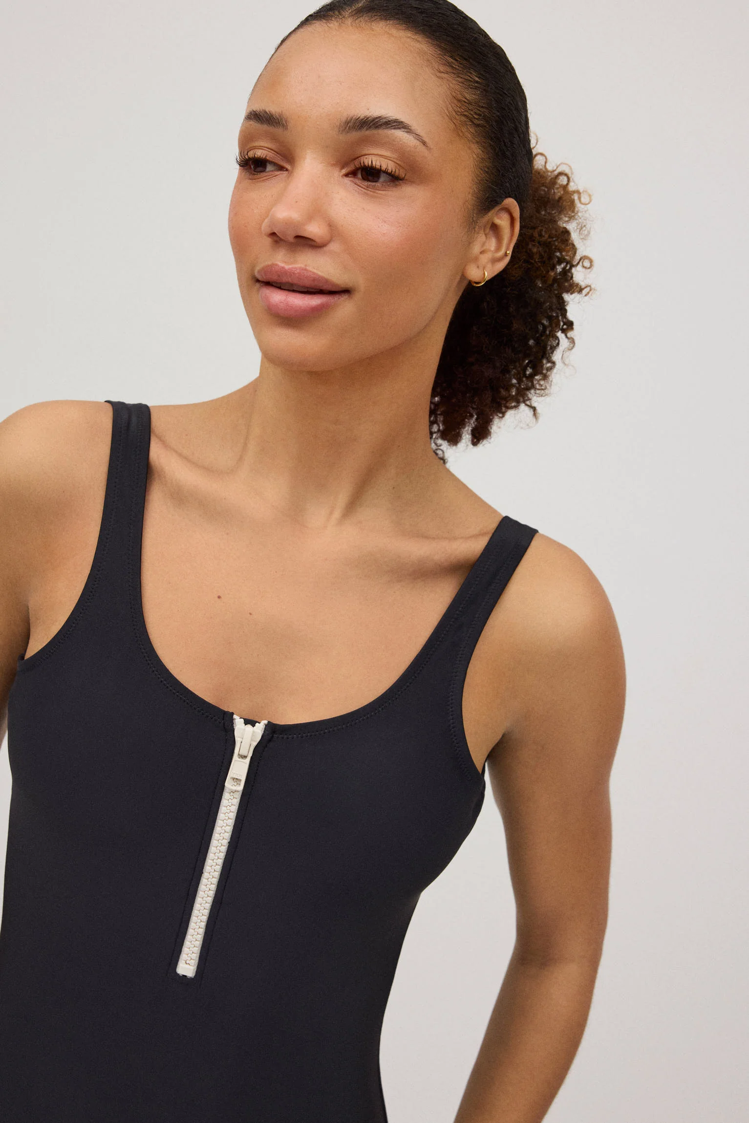 Maillot de bain galbant noir avec fermeture éclair contrastée, conçu pour vous offrir confort et style à tout moment.