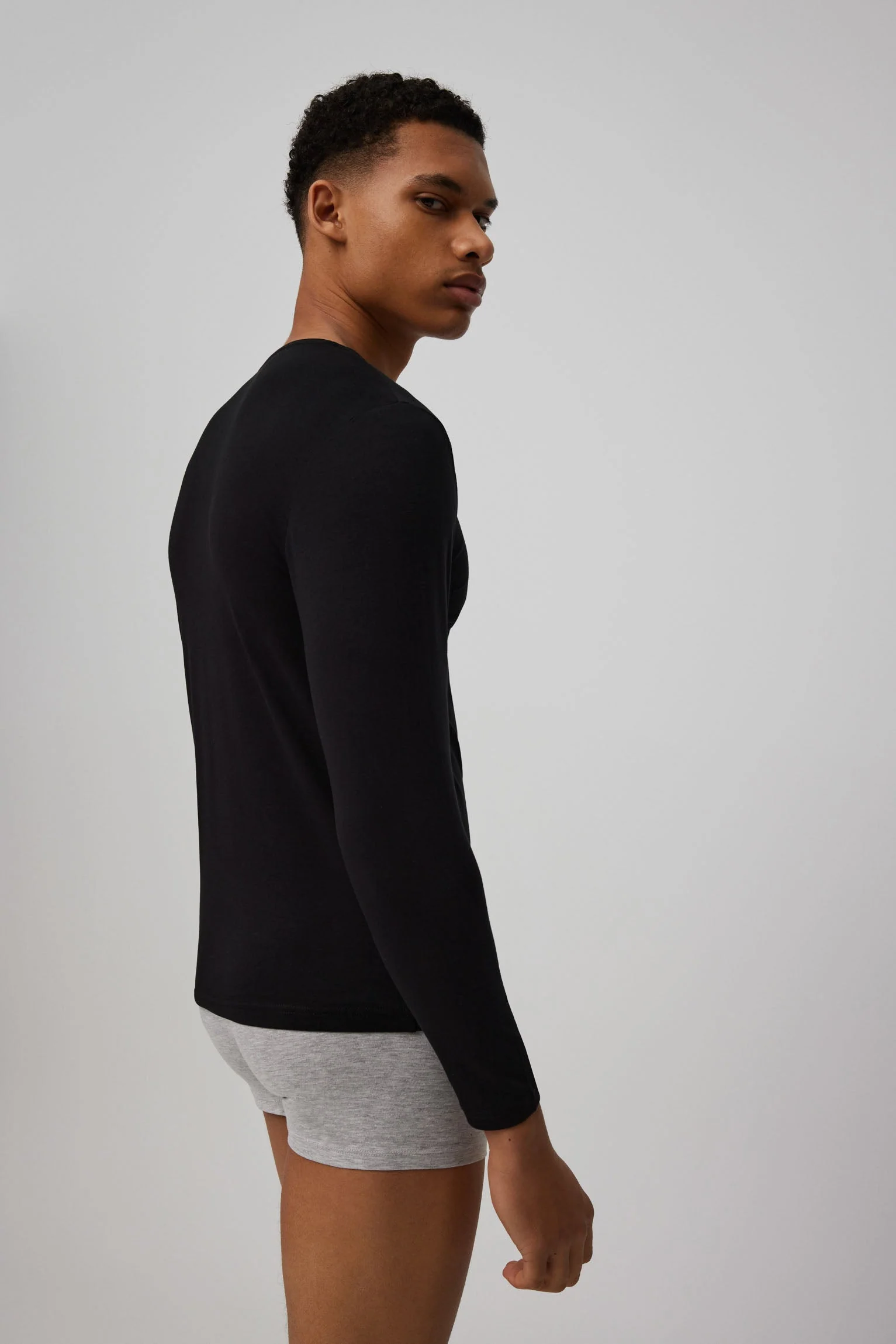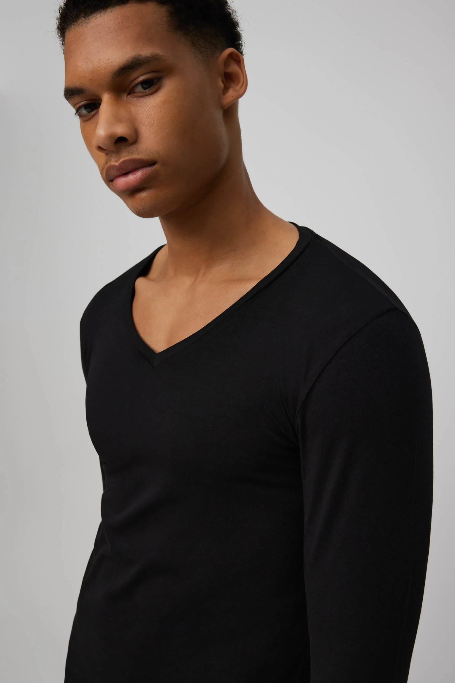 Maillot de corps noir à manches longues et col en V