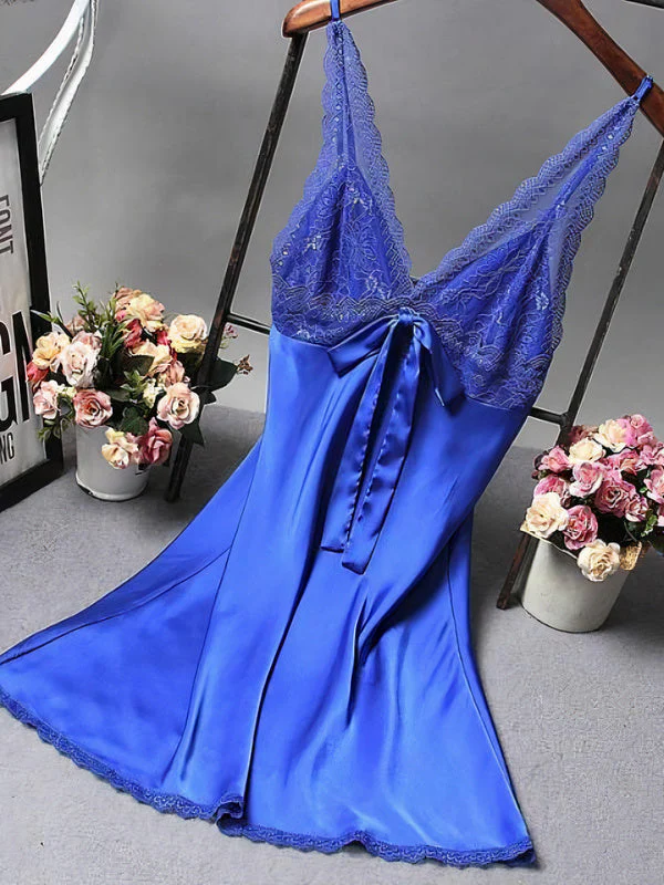 Nuisette en Satin avec nœud pour Femme | Bleu Signature