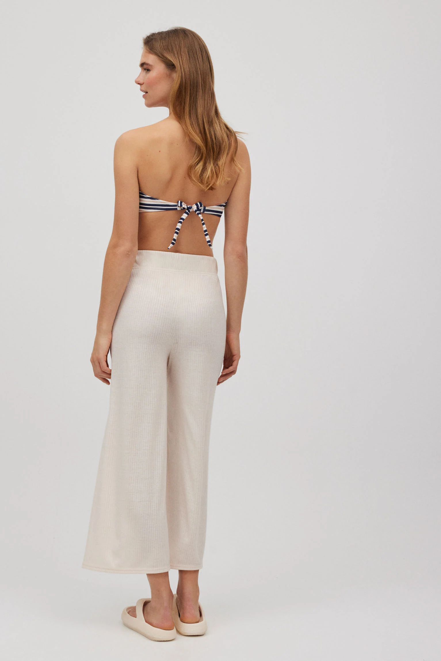 Pantalon long en tissu côtelé. Coupe large et taille froncée ajustée au corps. Associez-les à la chemise assortie de la collection et complétez votre look.