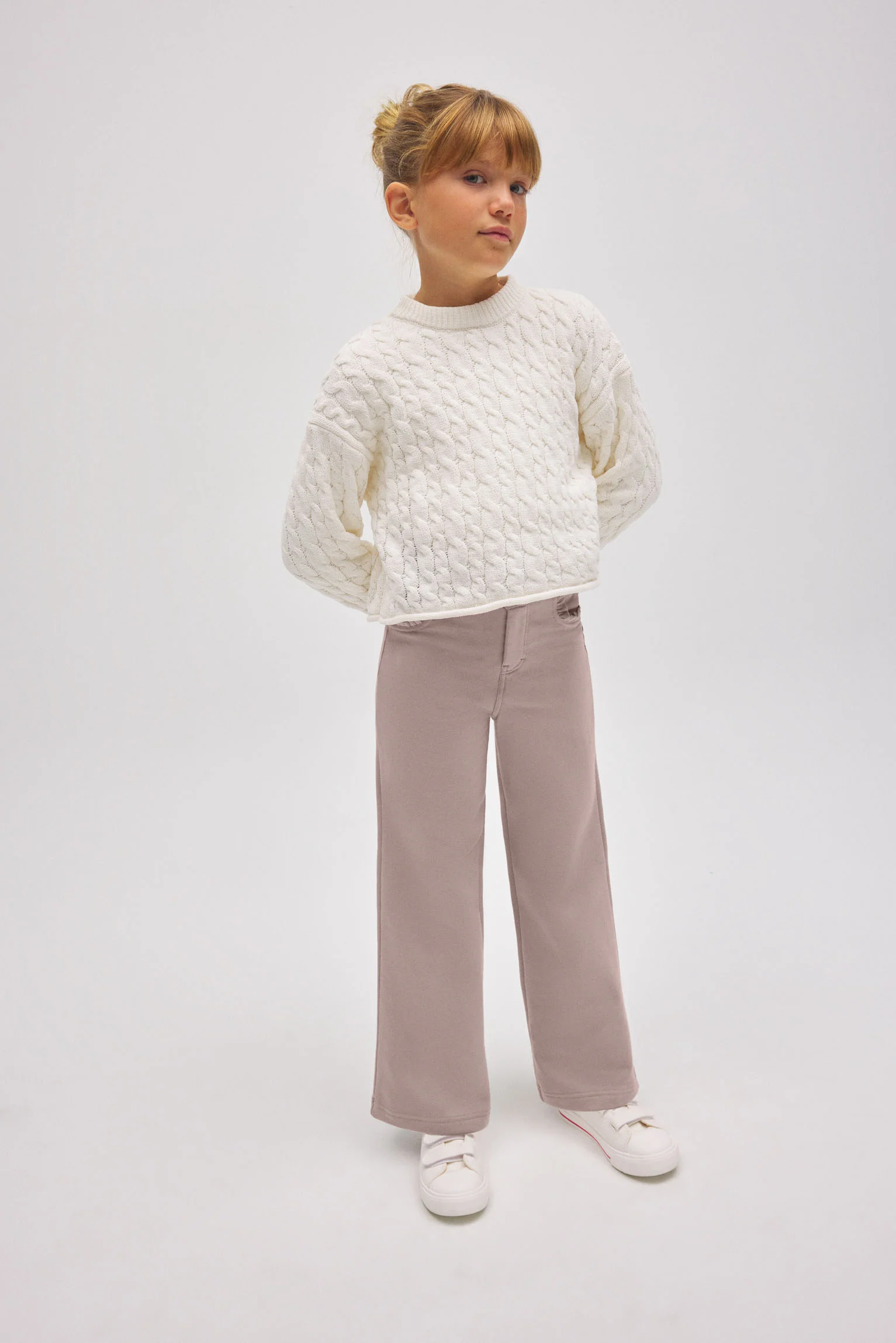 Pantalon large pour fille avec poches couleur pierre