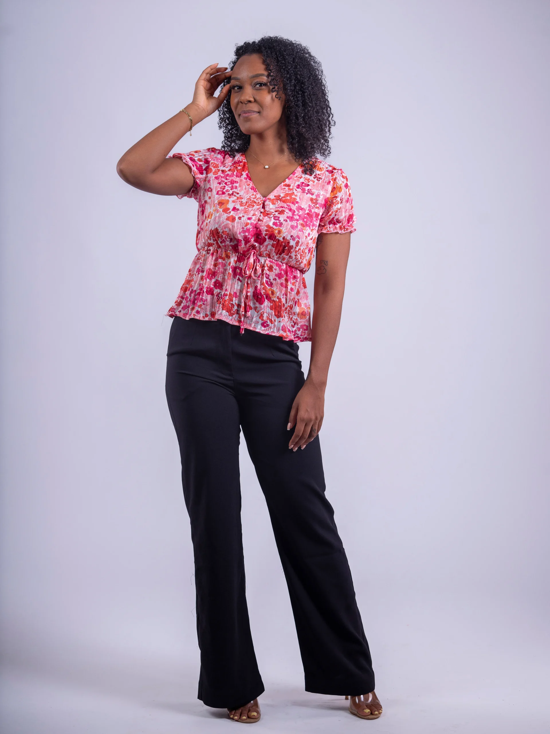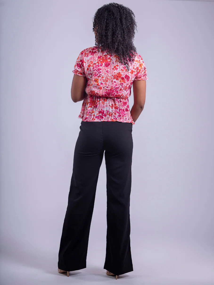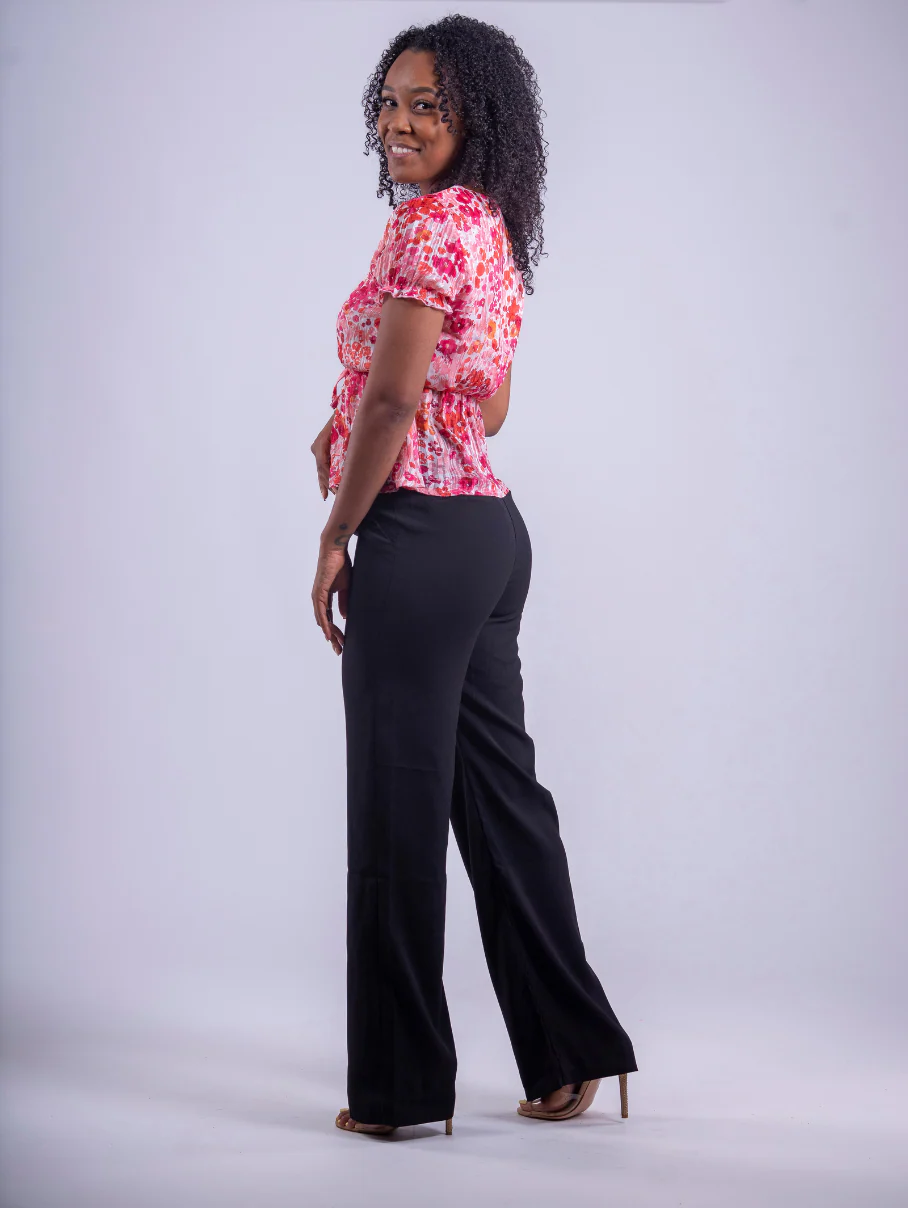 Confectionné dans un tissu fluide et agréable à porter, il dessine une silhouette élancée grâce à sa coupe droite et sa taille haute flatteuse.