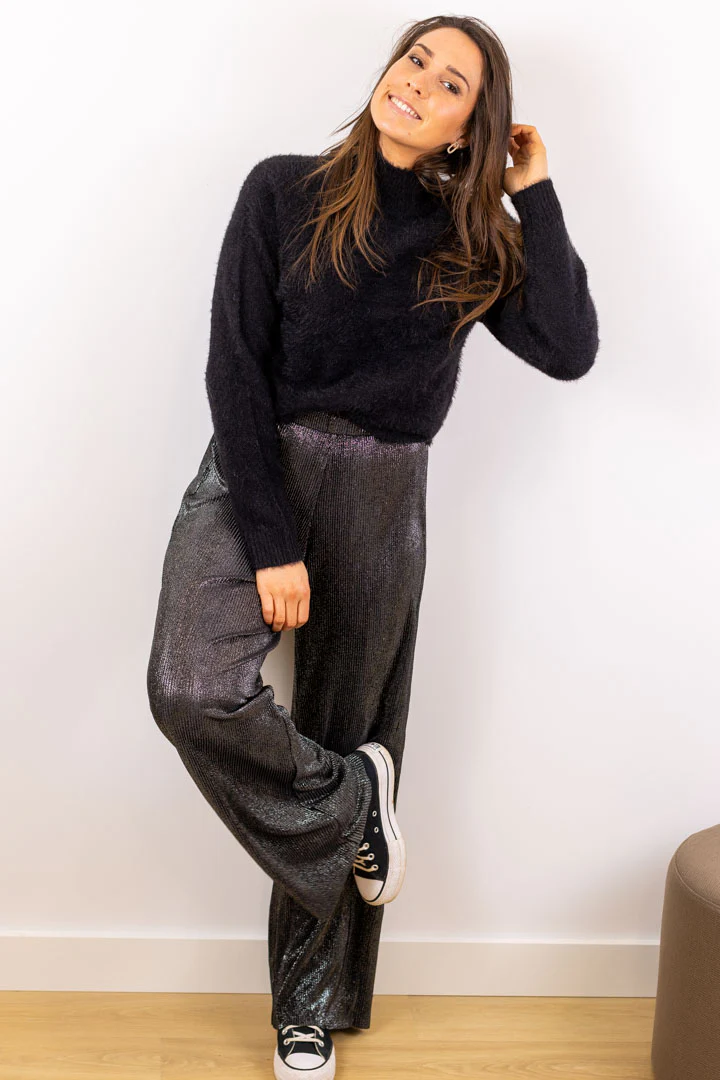 Coupe droite Elastique à la taille Non doublée Non transparent Doux et agréable à porter Matière effet satiné et plissée Petit point de couleur argenté Tailles : XS : 34 / S : 36 / M : 38 / L : 40 / XL : 42 Le modèle mesure 1m62 et porte une taille XS […]