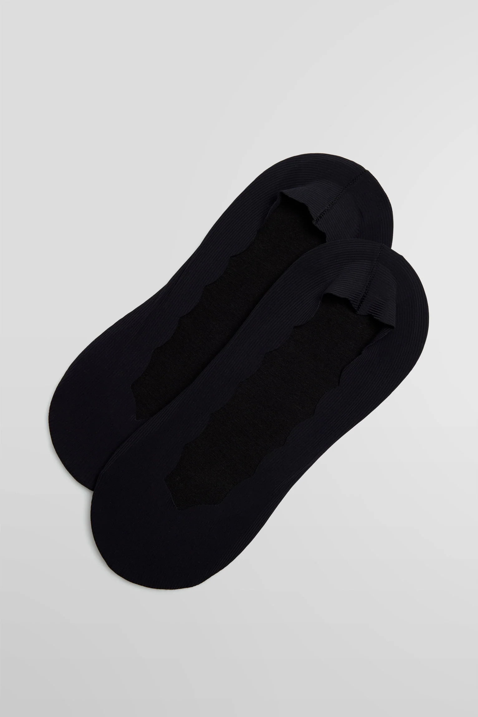 Pinkies invisibles en coton pour femme. Conception lisse avec bande de silicone pour un meilleur ajustement au pied. Design simple et élégant avec bord ondulé. 95 % coton, 5 % élasthanne