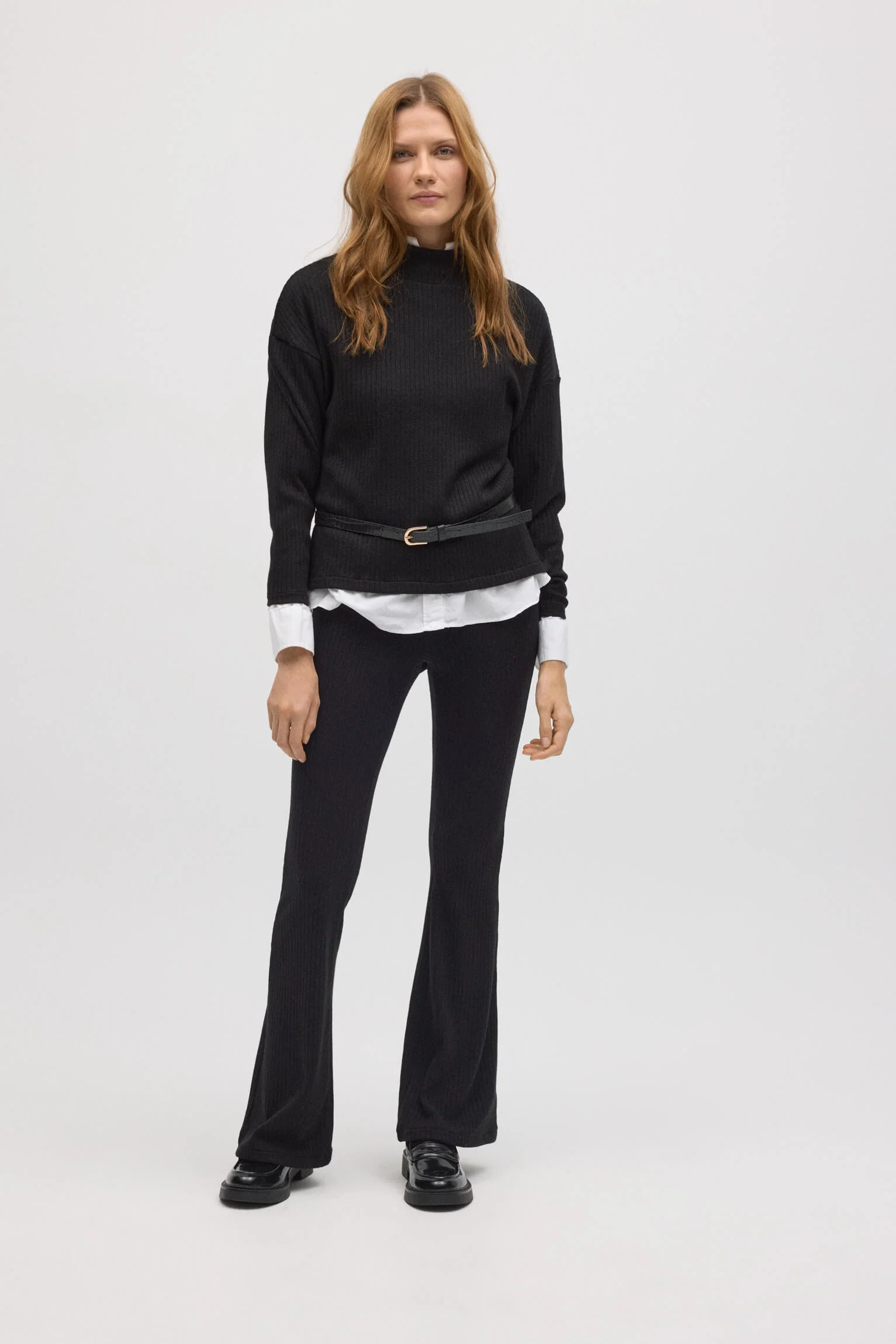 Ce pull chaud en maille côtelée avec col est une option polyvalente pour les journées plus froides. Sa texture côtelée apporte une touche délicate et moderne, tandis que sa coupe ample le rend extrêmement confortable. Conçu pour celles qui recherchent un vêtement confortable et élégant au quotidien.