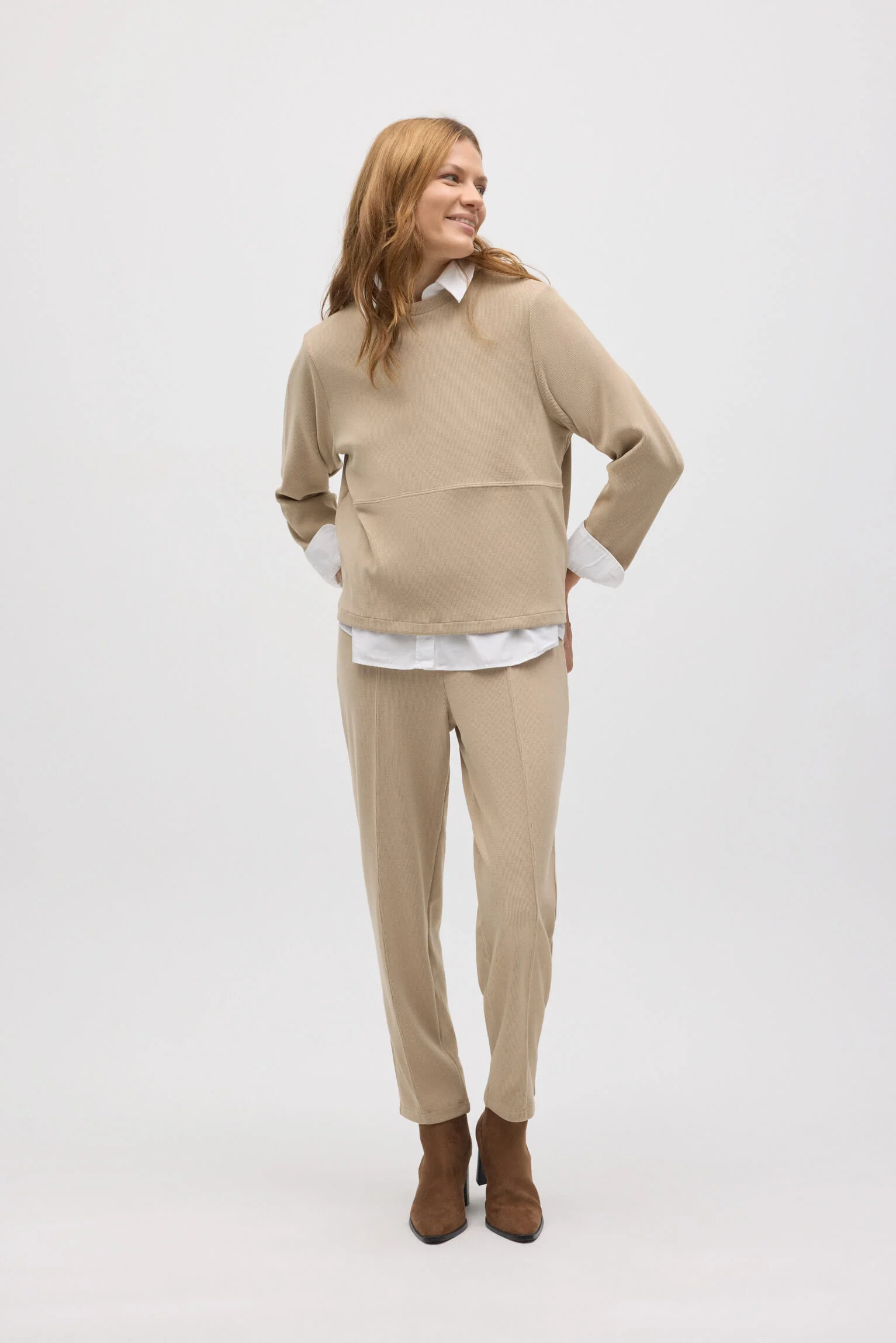 - Tissu chaud effet velours côtelé : Offre confort et chaleur tout au long de la journée sans sacrifier le style.