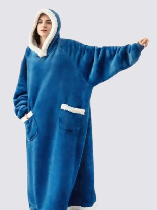 Pull Plaid Polaire XXL Bleu Signature : le cocon qui réchauffe vos soirées et réinvente le confort chez soi