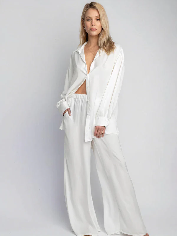 Pyjama Chemise et Pantalon en Satin Côtelé Blanc Signature