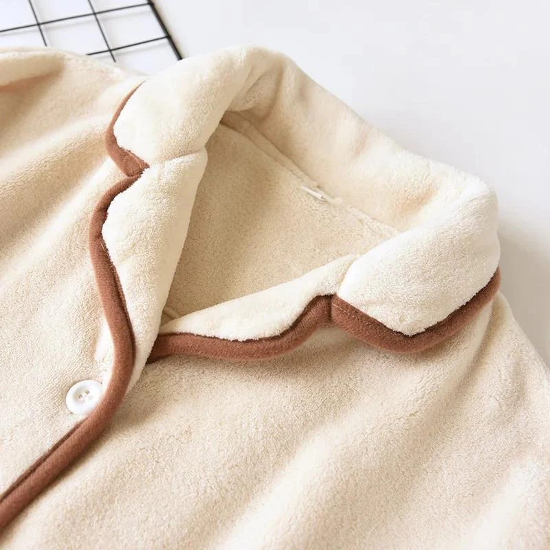Avec leur coupe classique et leur design intemporel, ces pyjamas disposent de boutons pratiques et de poches confortables, idéales pour garder les mains au chaud ou y glisser de petits objets. Leur tissu polaire épais vous enveloppe dans un cocon de chaleur, tout en permettant une liberté de mouvement optimale.