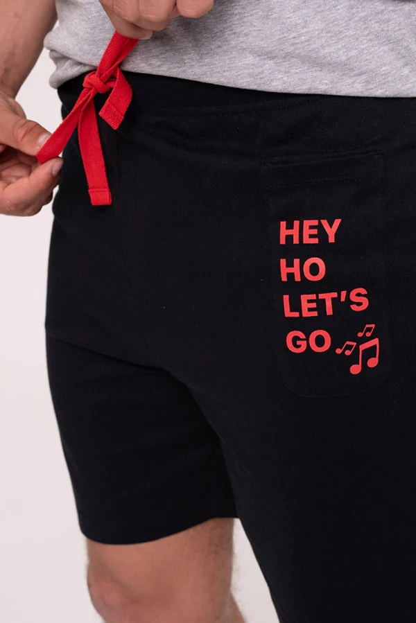 Ensemble pyjama d’été composé d’un débardeur et d’un short. Fabriqué en coton. Tissu léger, frais et respirant. T-shirt graphique fond gris, coupe longue et décontractée avec emmanchures larges. Short noir avec message, cordon réglable et poches latérales. Design inspiré du rocker.