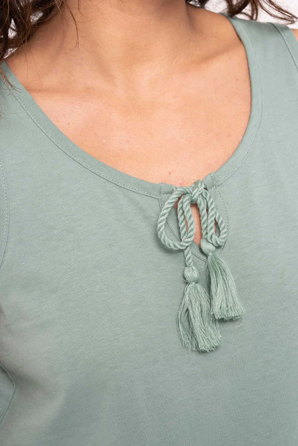 Pyjama cool et confortable, avec un débardeur vert et un short imprimé multicolore. Le pantalon comporte des poches intégrées et des cordons de serrage réglables pour un ajustement parfait.