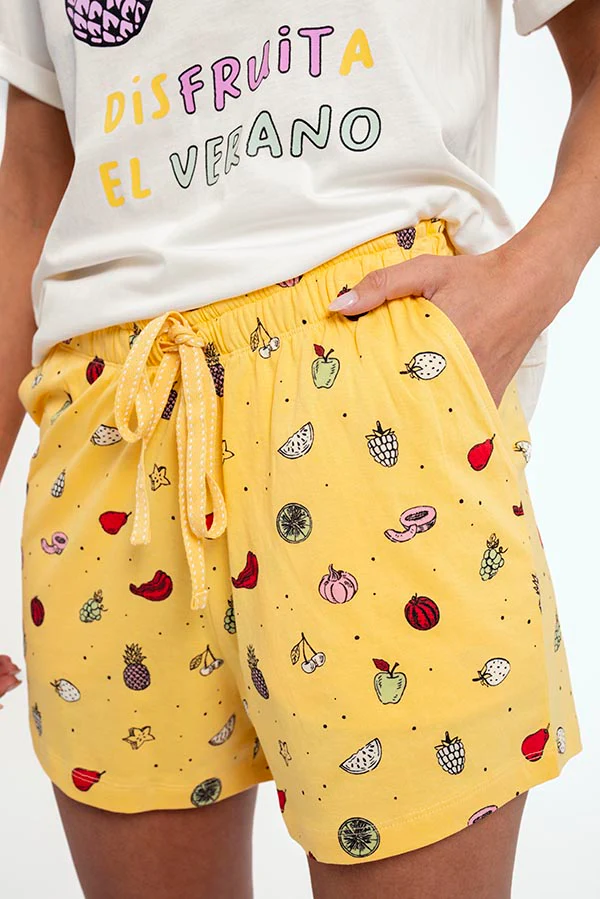 Pyjama court femme en coton imprimé Fruits | MUYDEMI