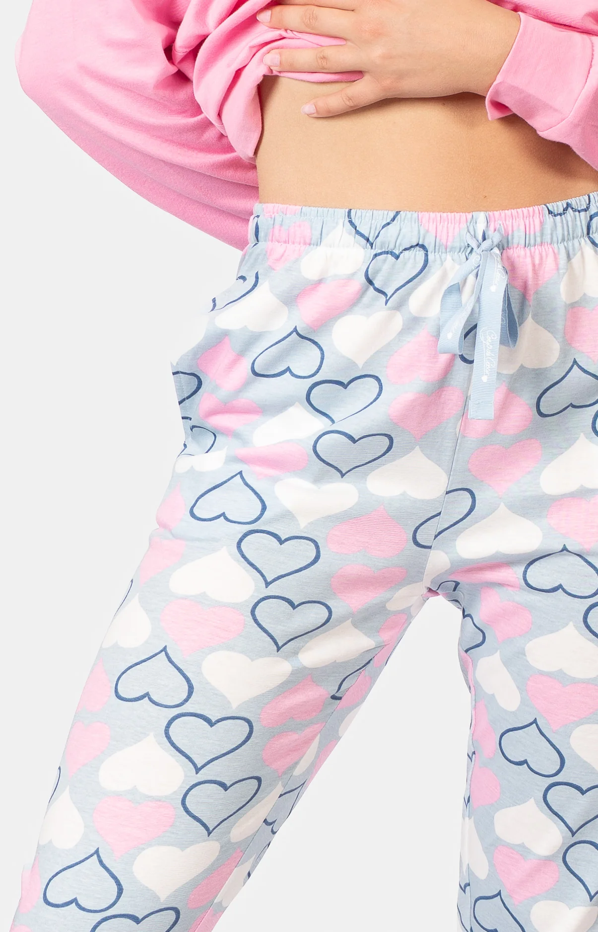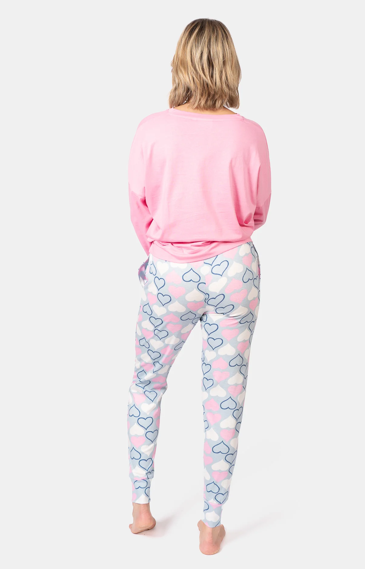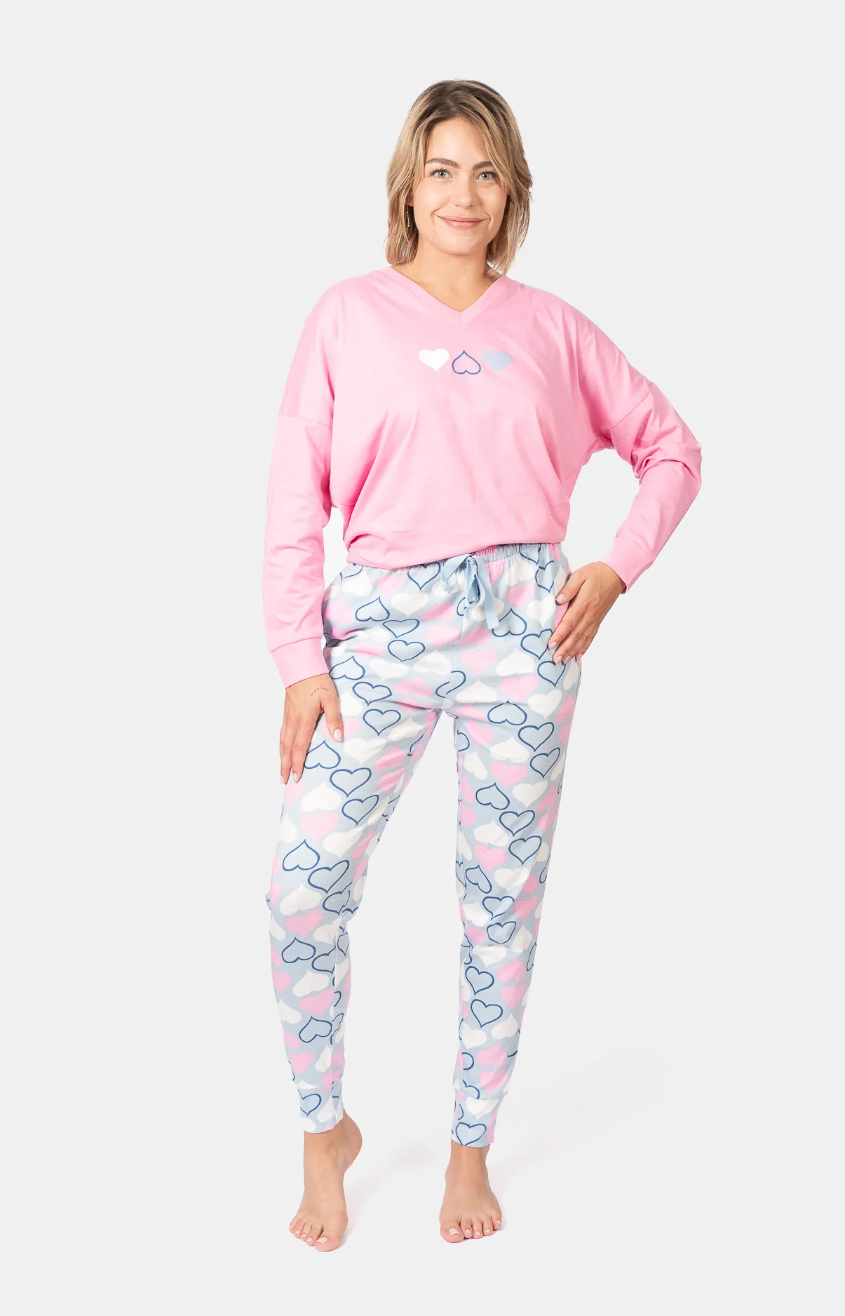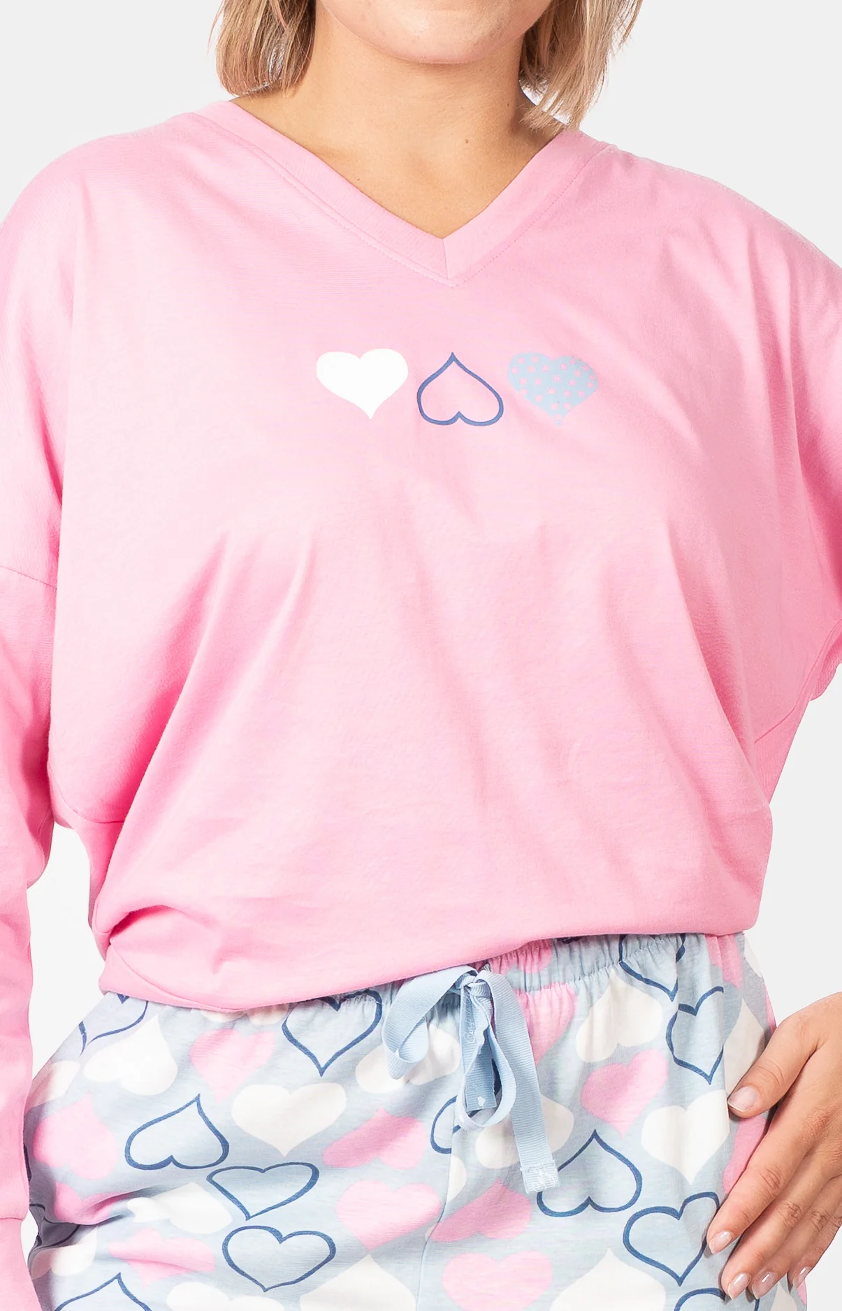 – Pyjama femme en jersey 100% coton– Pantalon ajusté ; Ceinture élastique avec cordon de serrage– T-Shirt oversize, col V – Création exclusive