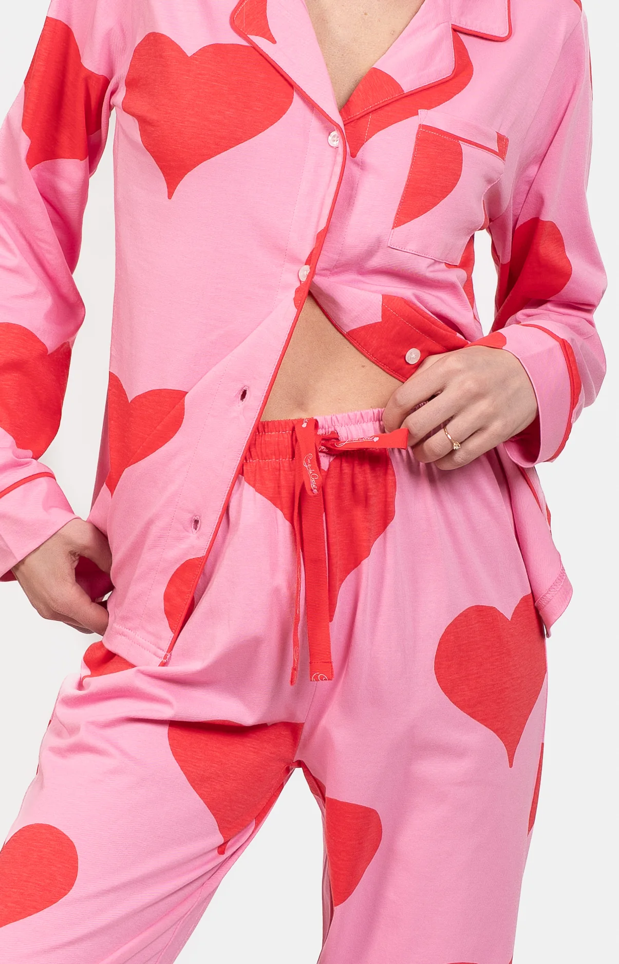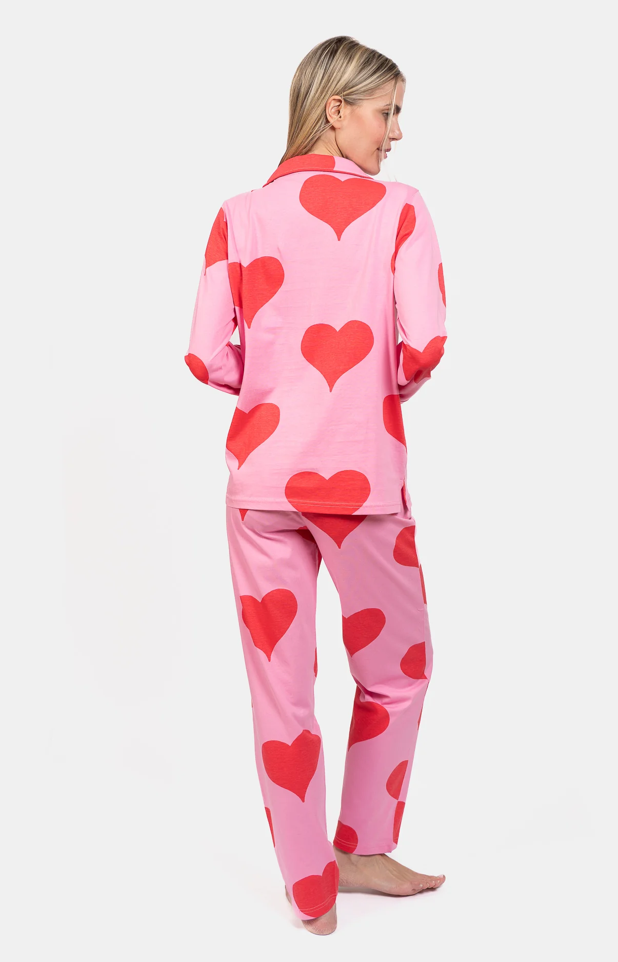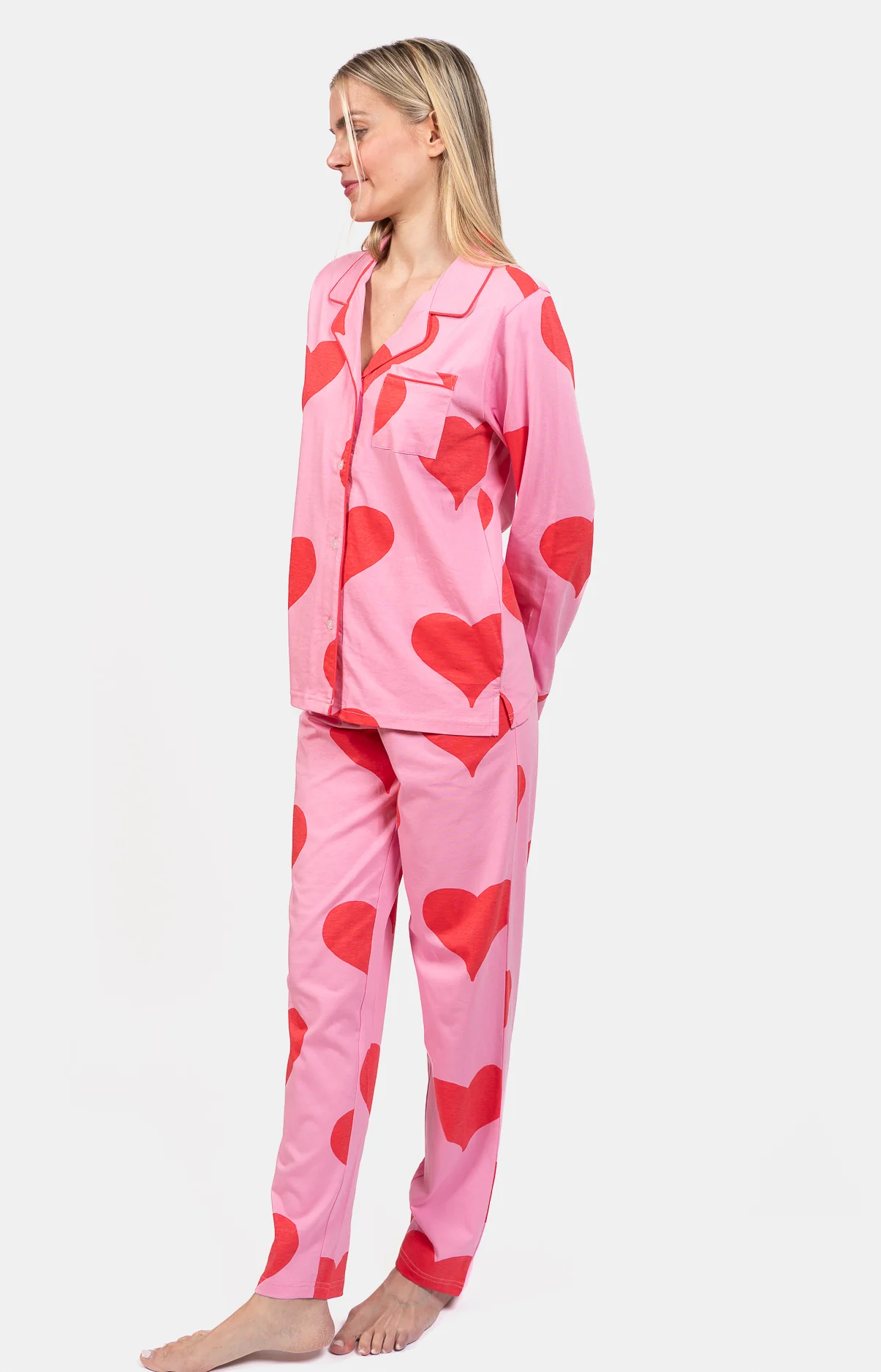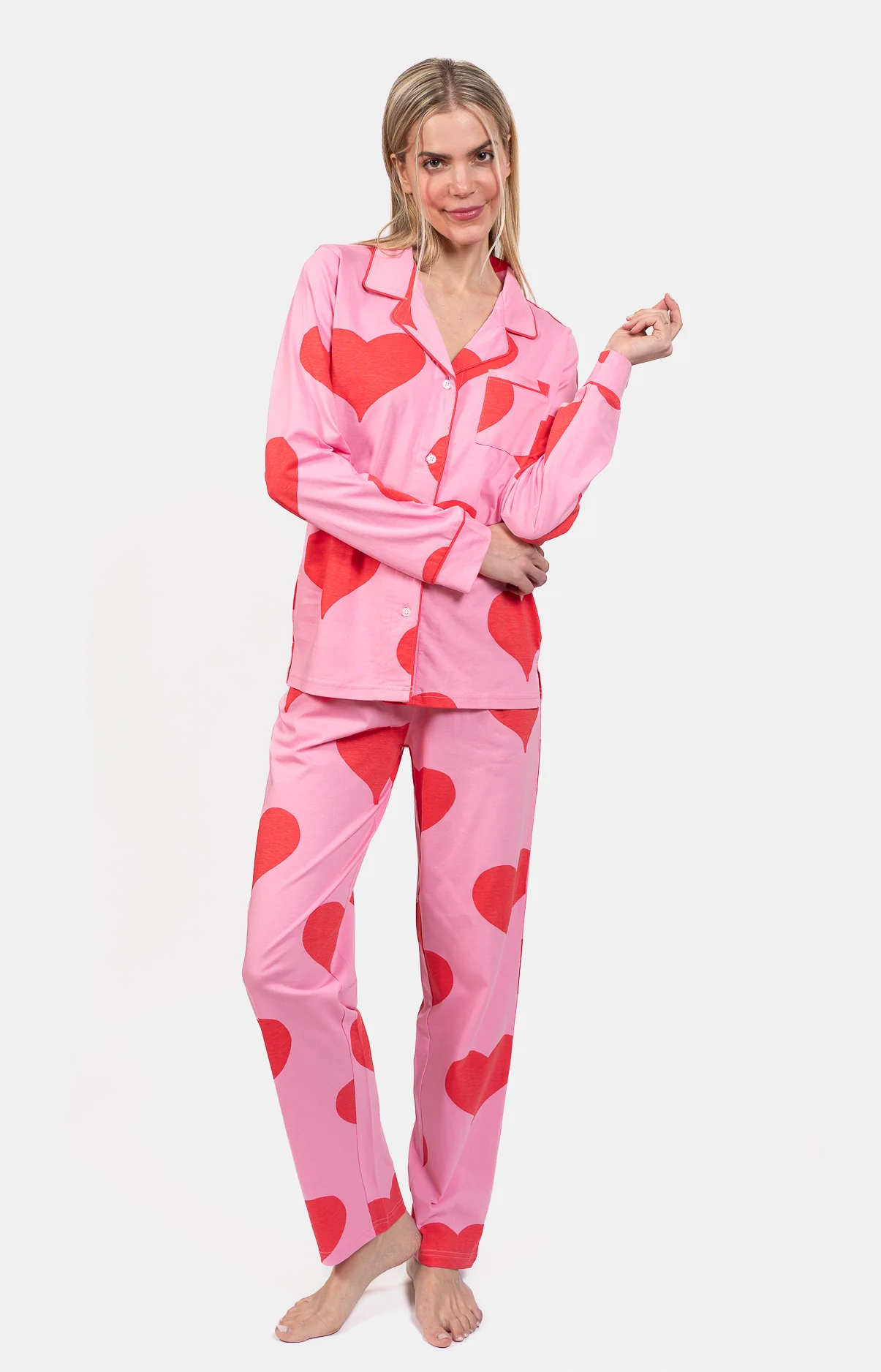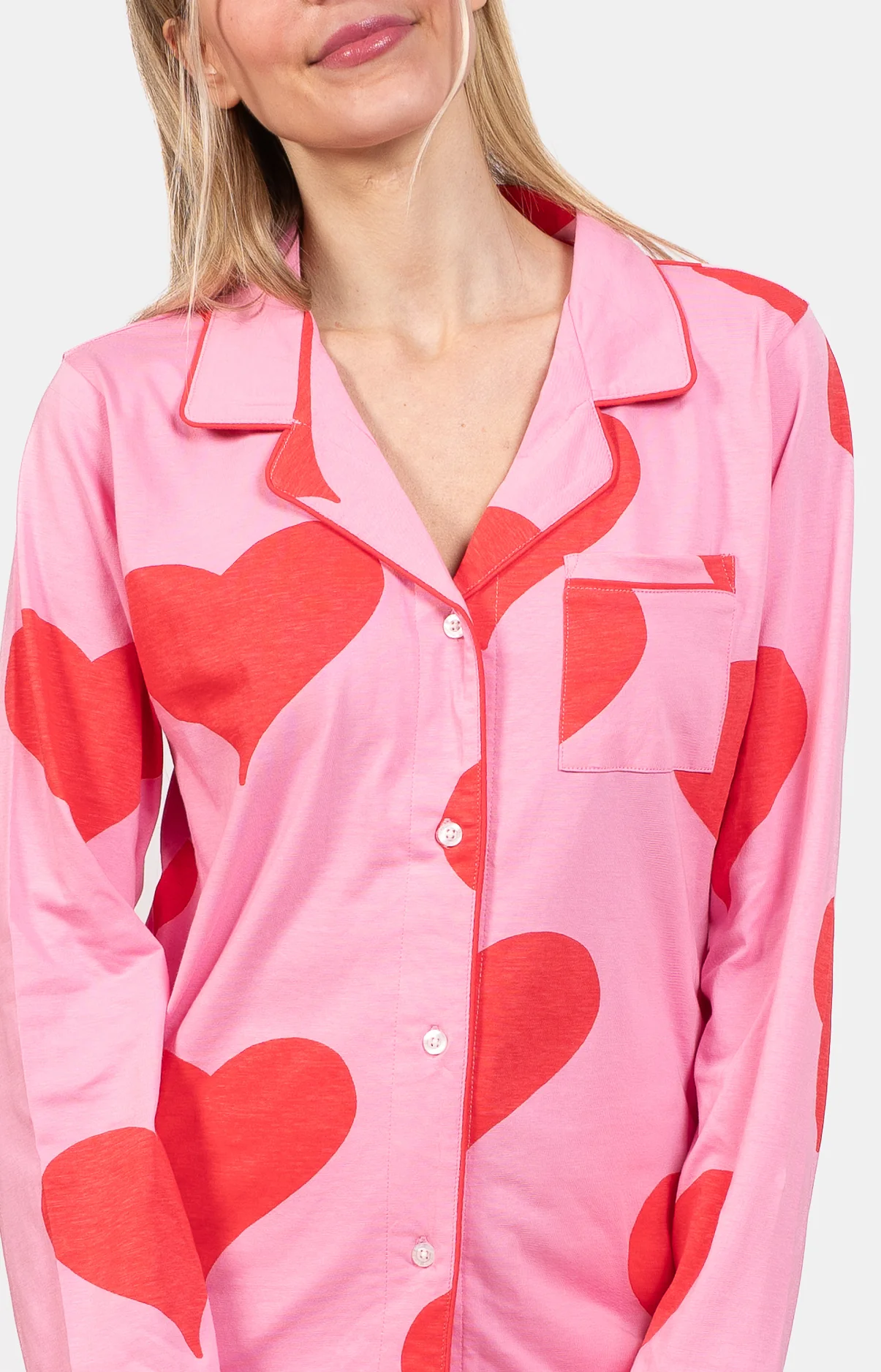 – Pyjama Femme en jersey 100% coton – Ceinture élastique avec cordon de serrage – Veste boutonné avec poche poitrine – Création exclusive