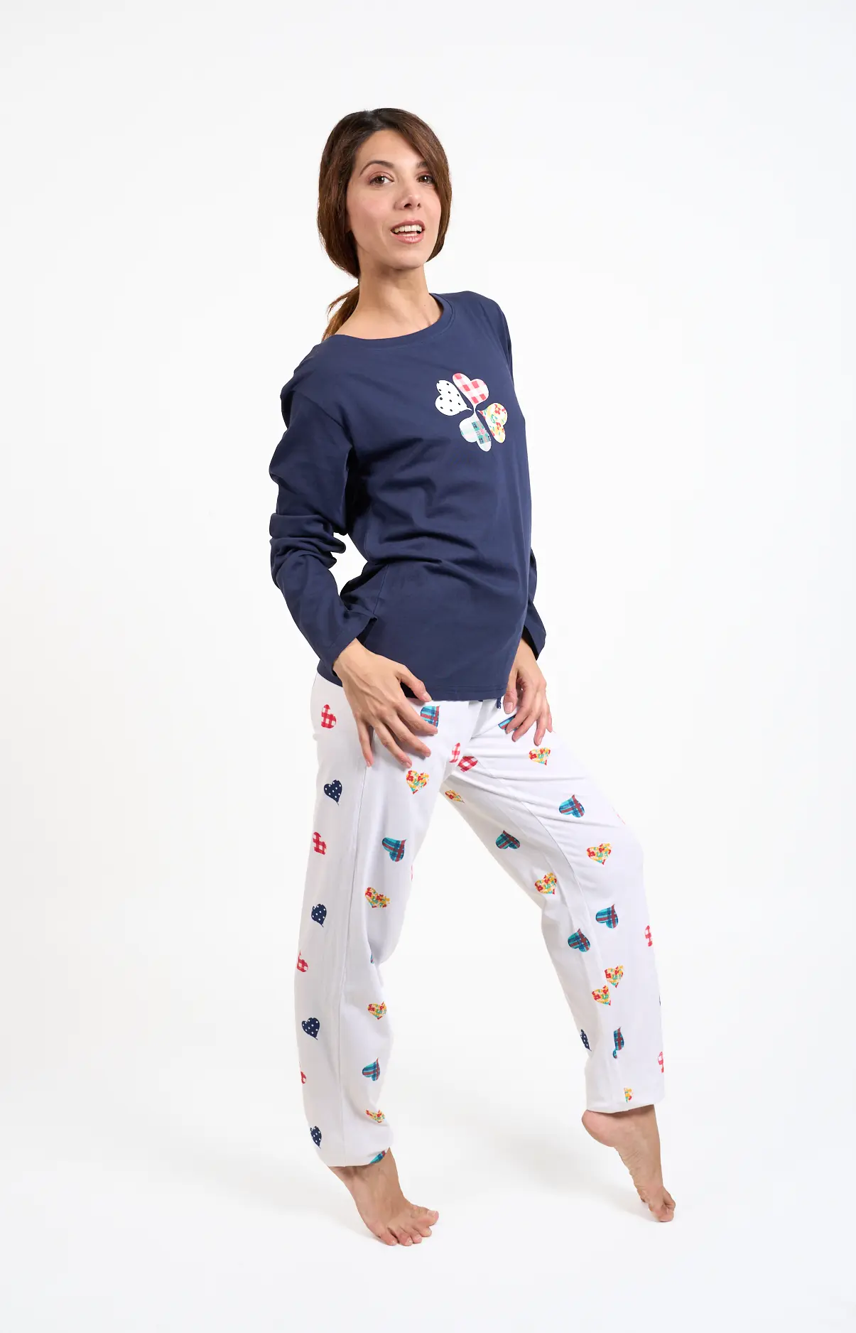 – Pyjama femme en jersey 100% coton – Ceinture élastique avec cordon de serrage – T-Shirt col rond – Création exclusive