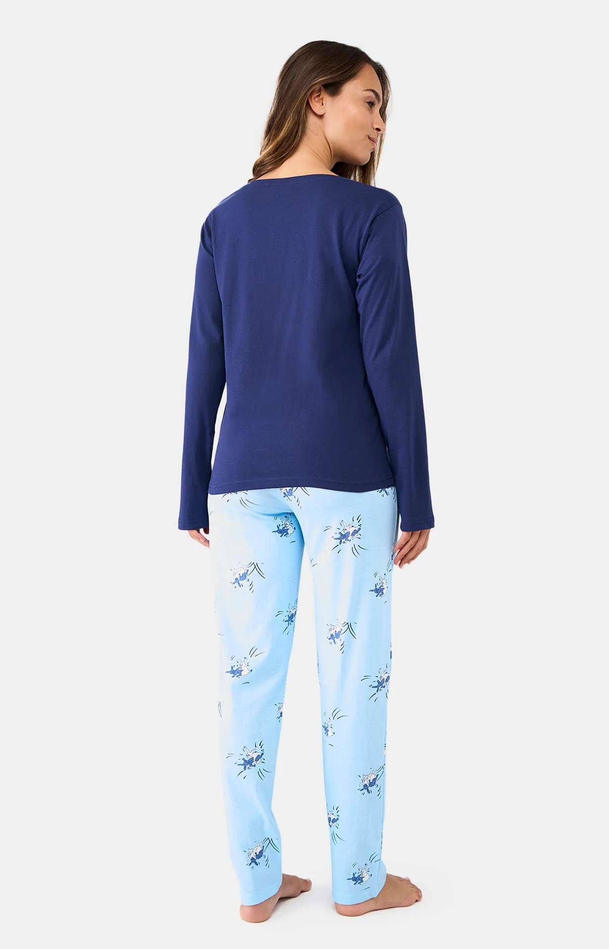 Spécial Noël Pyjama femme en jersey 100% coton Ceinture élastique avec cordon de serrage T-Shirt col rond Création exclusive Pochette cadeau offerte