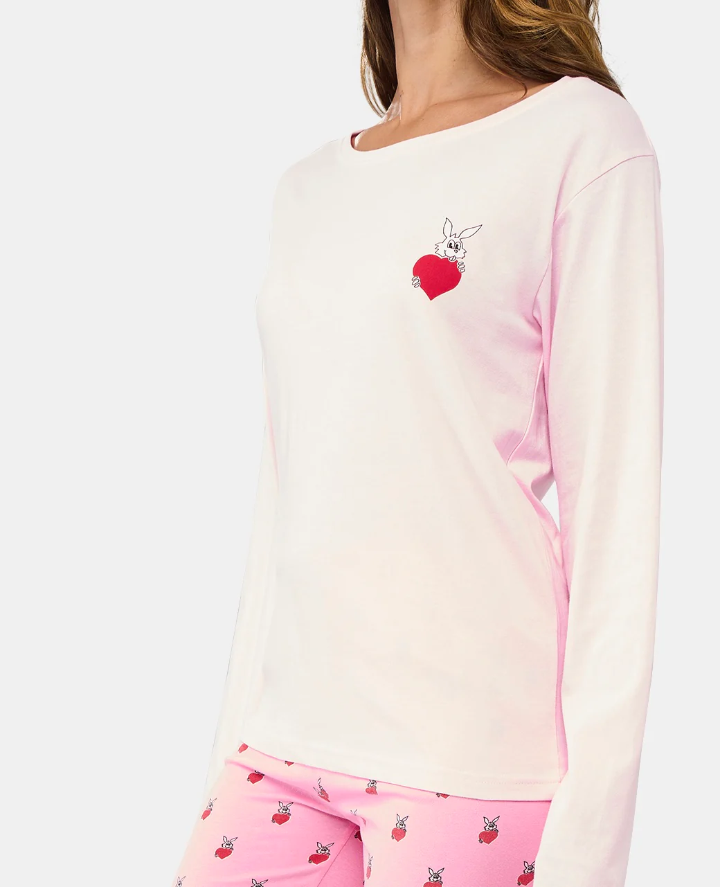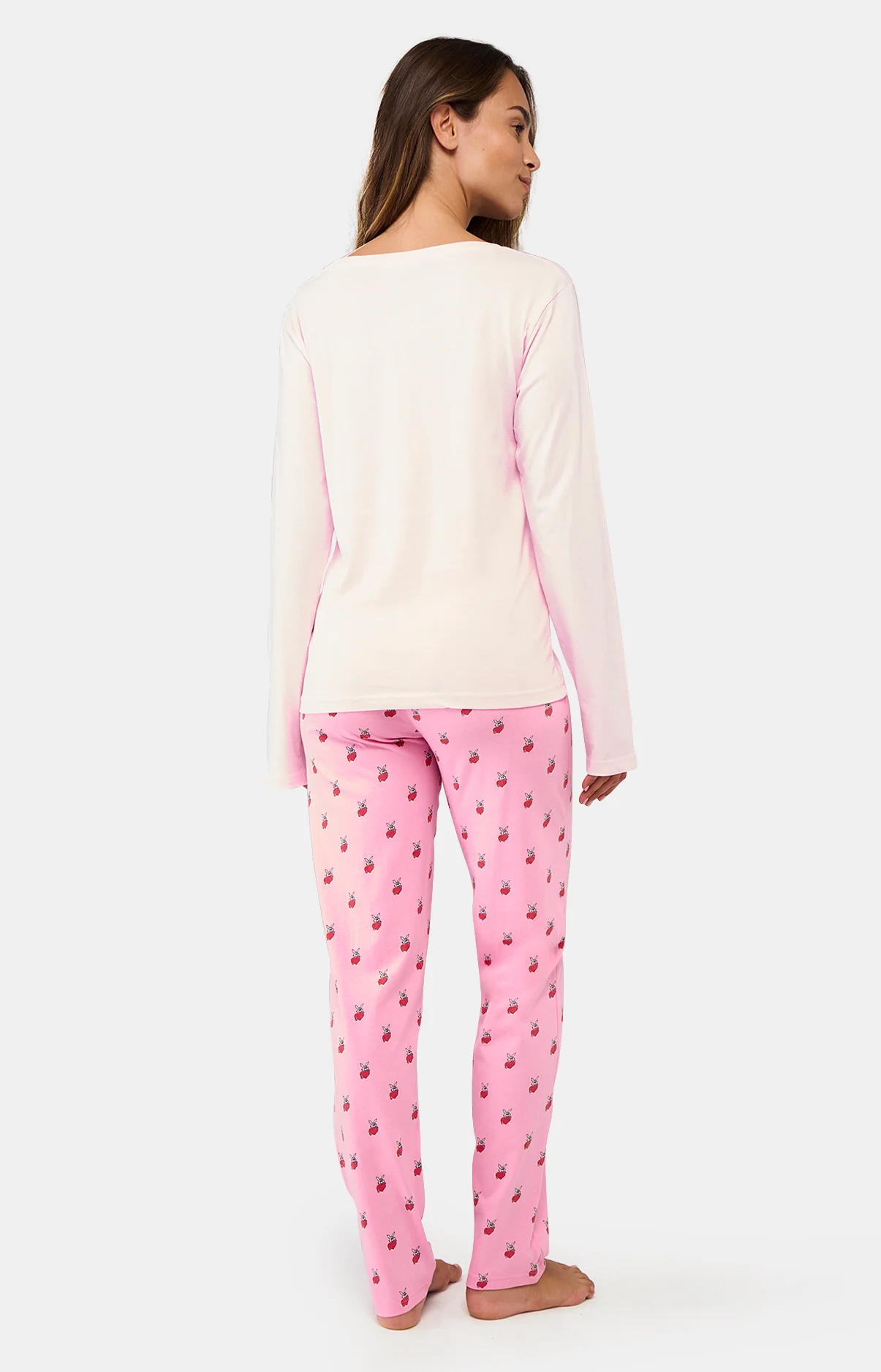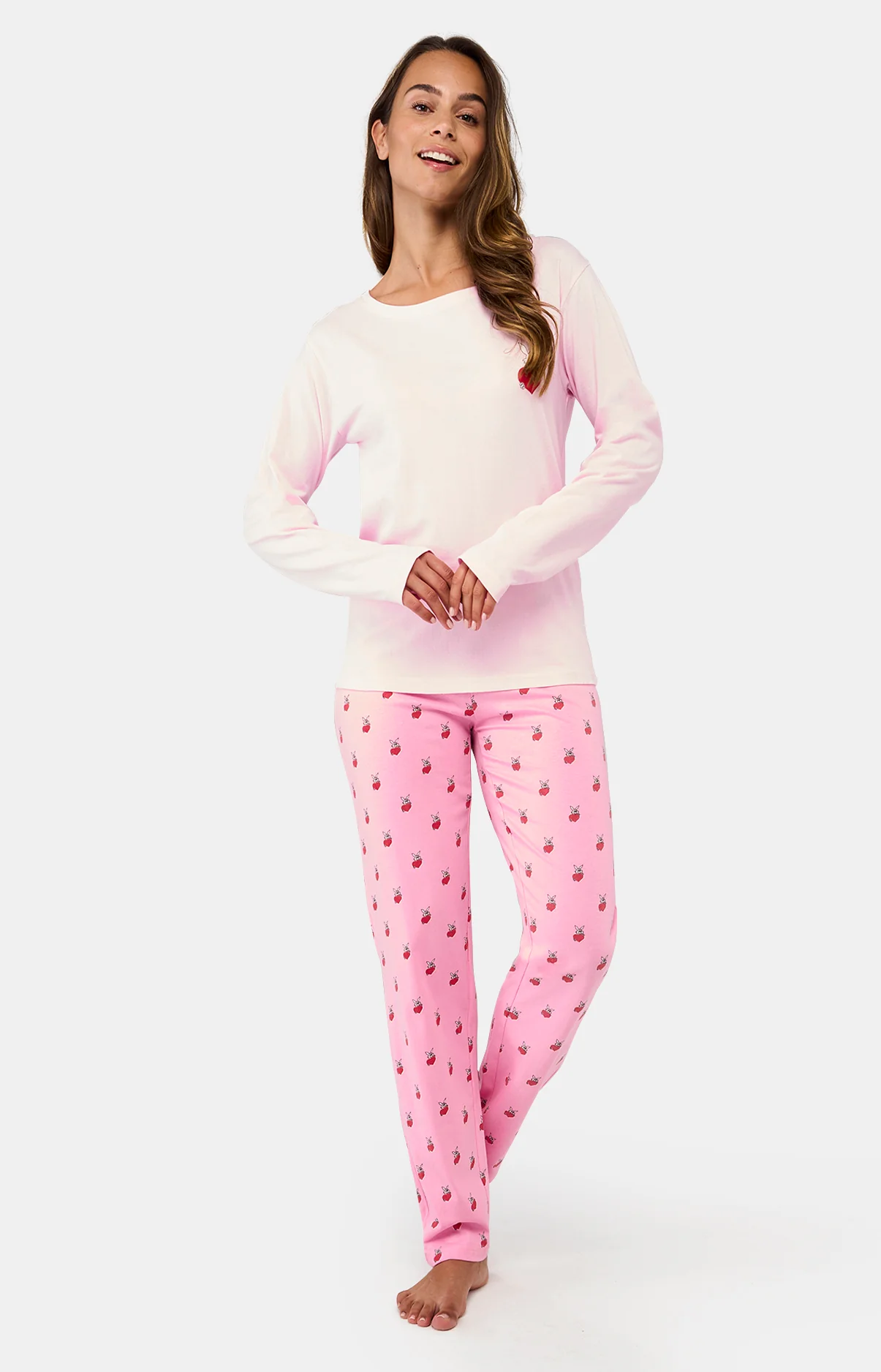 Spécial Noël Pyjama femme en jersey 100% coton Ceinture élastique avec cordon de serrage T-Shirt col rond Création exclusive Pochette cadeau offerte