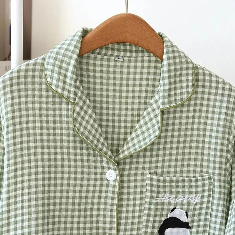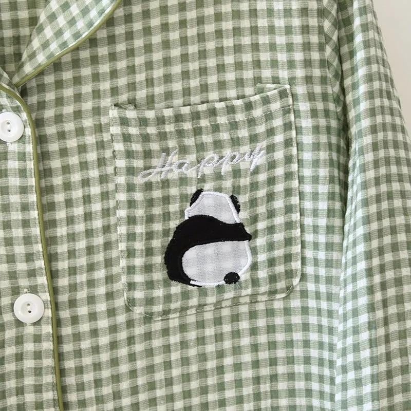 Ce pyjama pour homme est à la fois classique et moderne avec ses carreaux verts et son joli motif de panda. L’ensemble se compose d’une chemise à manches longues et d’un pantalon assorti.